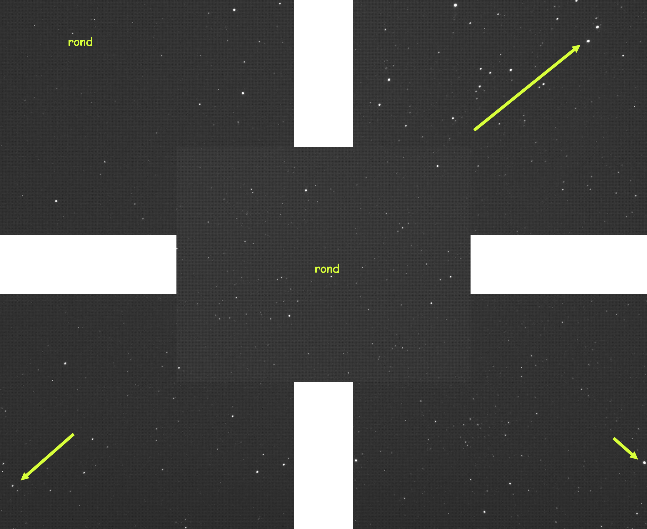 J'ai pris le centre et les 4 coins, la longueur des flèches indique la force de la coma.