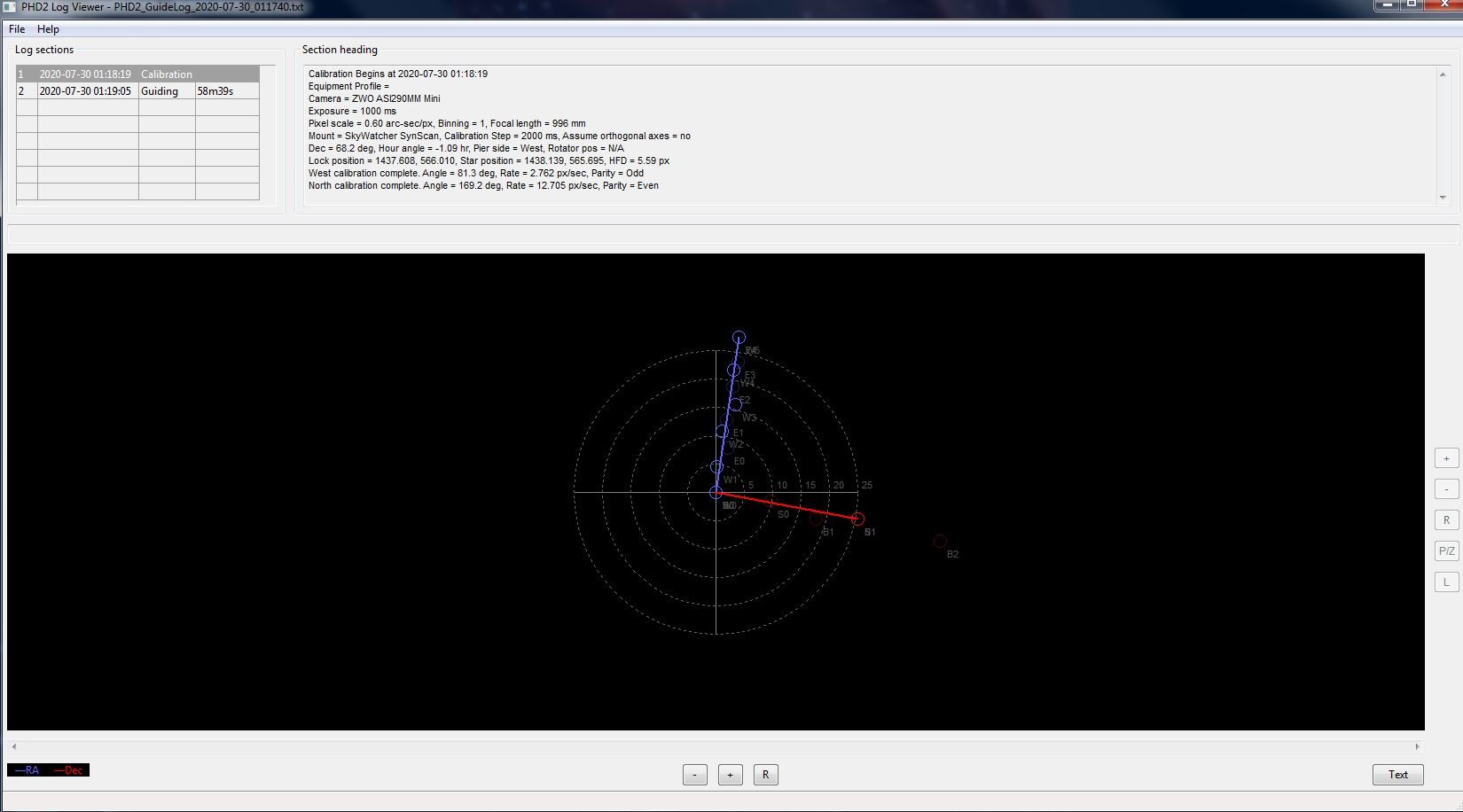 Par contre, avec quoi as tu généré les images pour "RA corrections removed", pas avec PHD2 log viewer manifestement ?