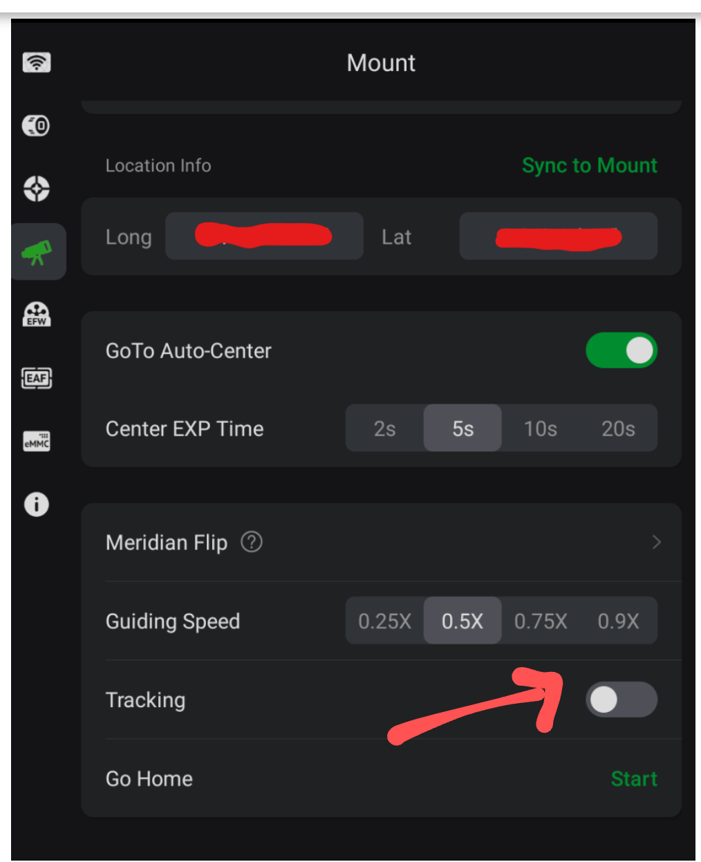 Essaie de voir si ton tracking est actif sur l'interface asiair.