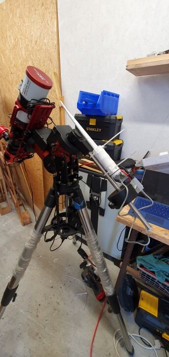Voici deux photo de mon setup, avec ASIAir et PAPBA et antenne extérieur (POE) sur contrepoids.