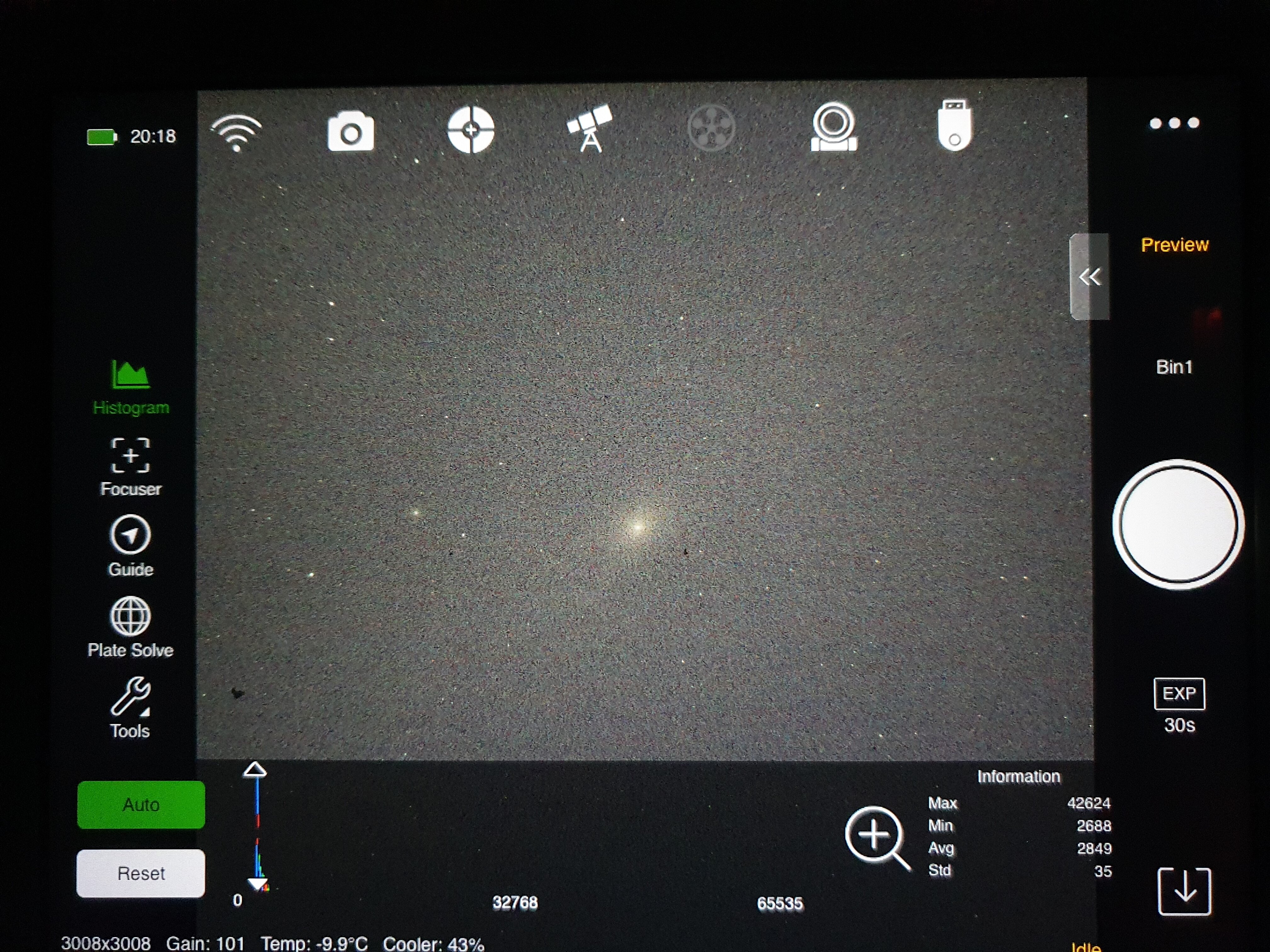 Bon, ciel correct pour le moment, donc un essai du mode Live.