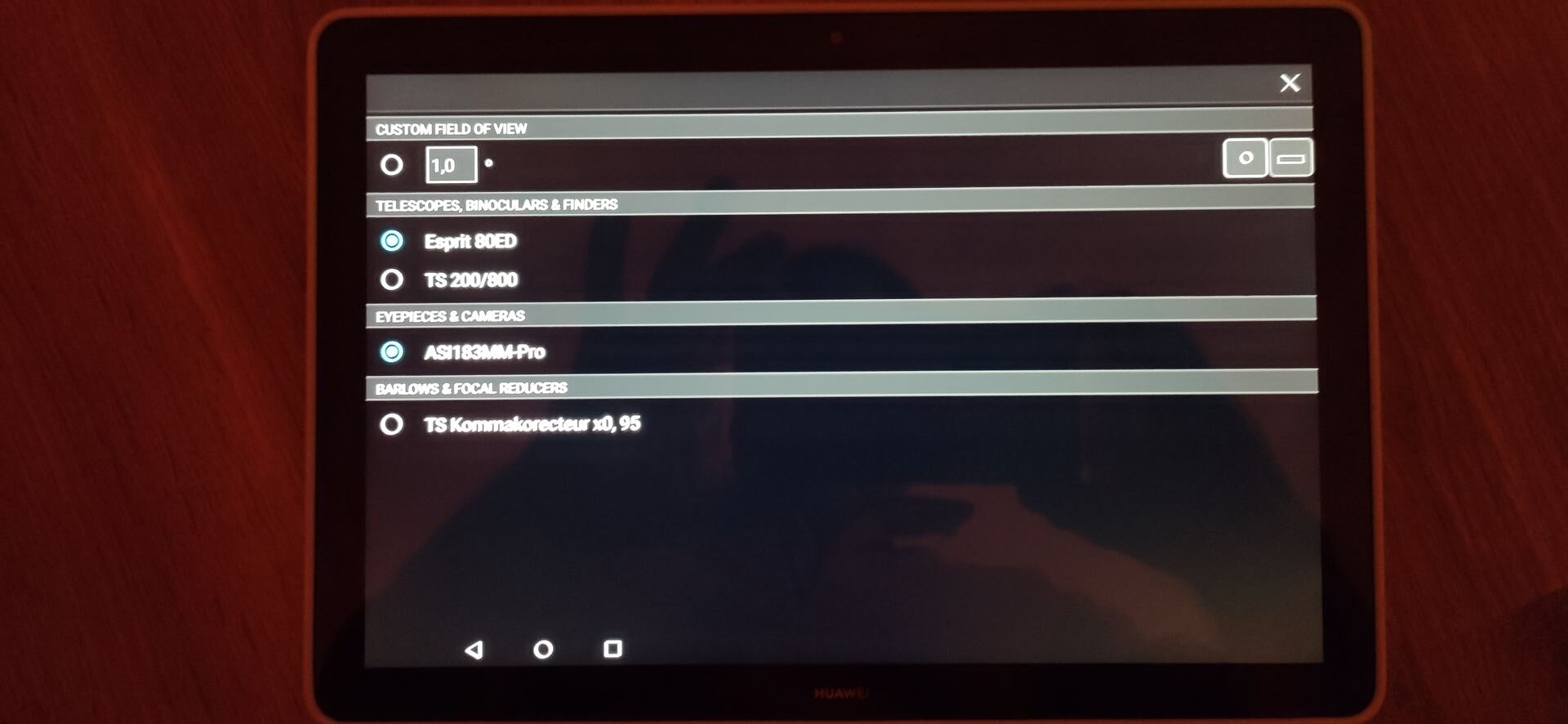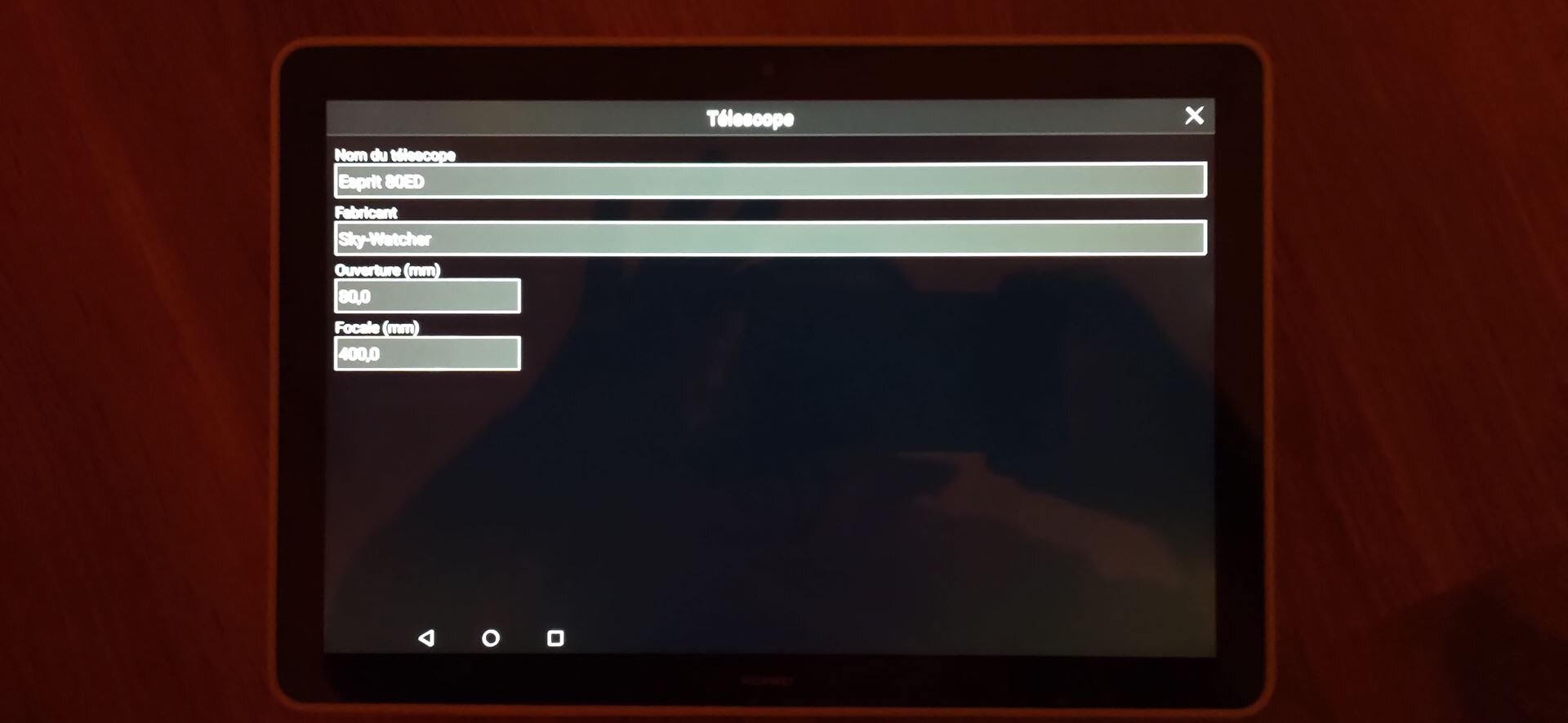 On ne demande pas de renseigner les specs de la camera de guidage dans SkySafari !