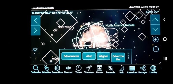 Donc effectivement NGC7000 est bien centrée et dans SkS6 et sur l'ASIAir.