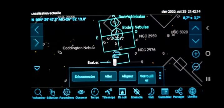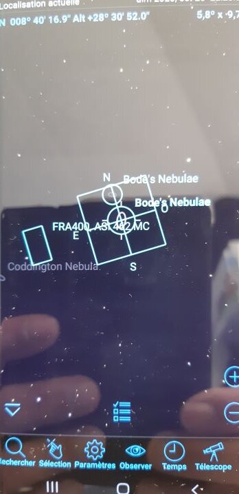 Pour le champ, ben là il n'y a pas de correspondance dans Skysafari avec le platesolving, ça serait vachement bien d'ailleurs pour avoir le champ exact. Mais c'est pas encore le cas.