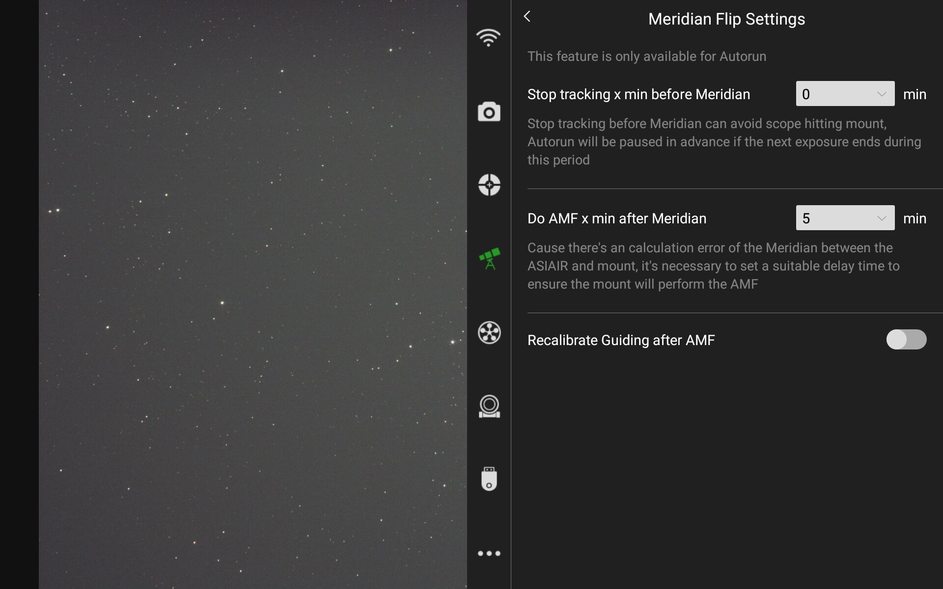 Pas sur de la nouvelle fonctionnalité ici, faudra tester la bête sur pattes... Savoir si cela applique un dark, comme iOptron iPolar durant le PA, mais ici durant l'AF, pour l'autorun??