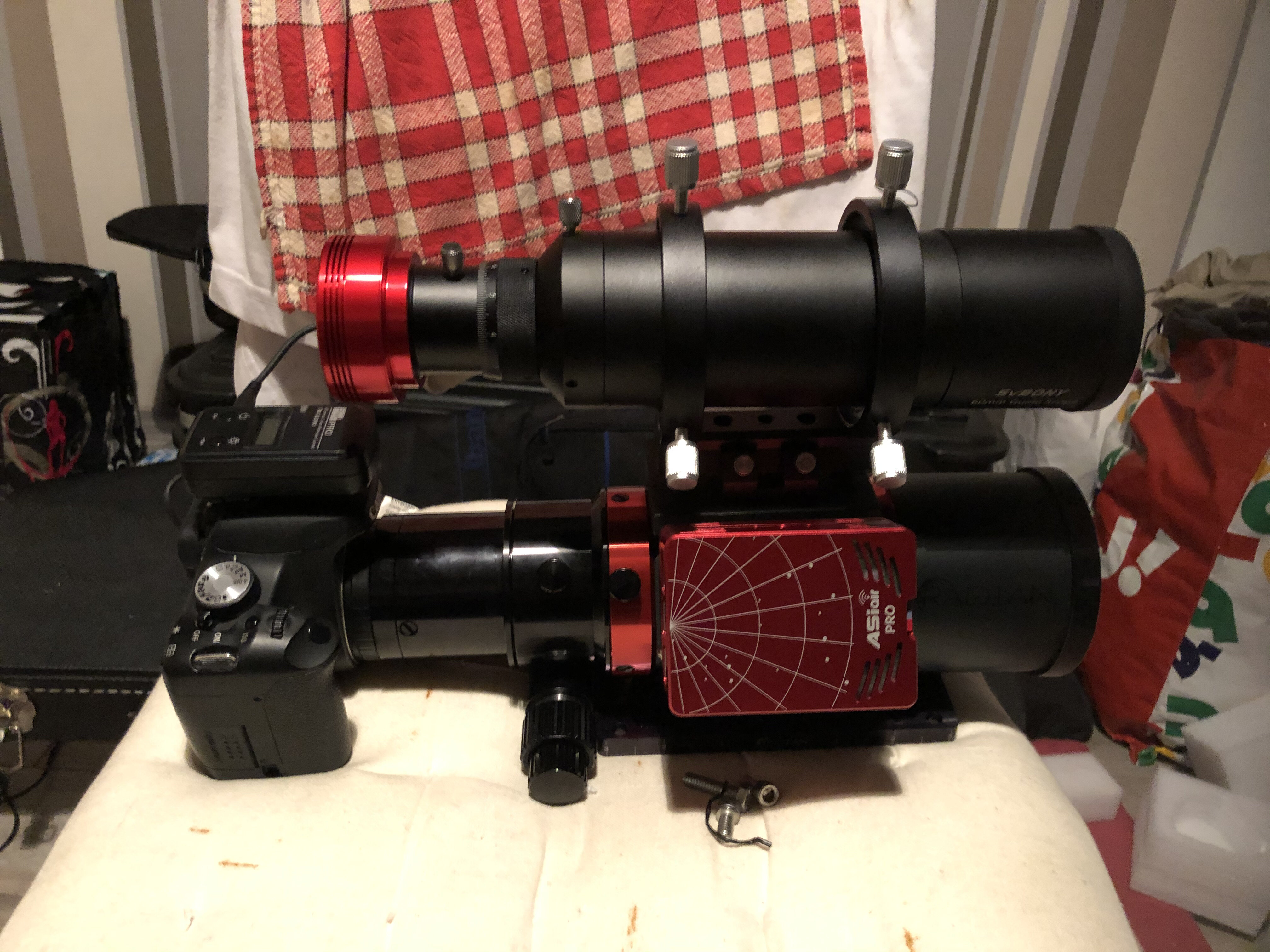 il me reste a fabriquer la pièce qui fixera le boitier sur l'ensemble , à l'opposé de l'asiair , et ensuite cablage du tout . j'ai opté pour une petite lunette avec focale courte , car j'aime les images grand champ , et la gestion d'une focale courte semble être plus simple pour commencer.