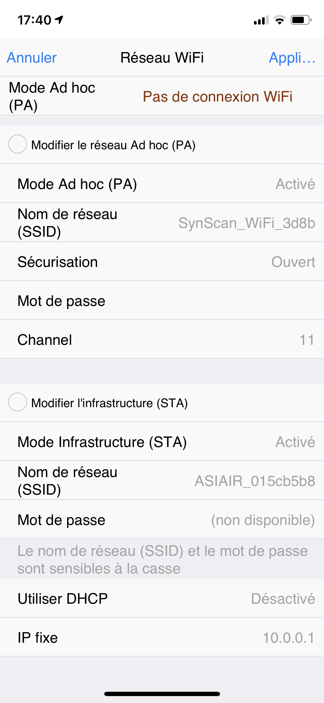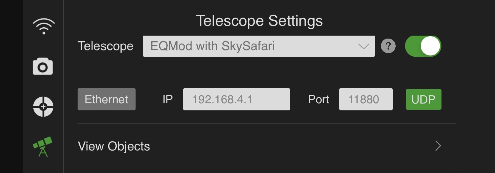 Puis dans Skysafari Pro (rester connecté au réseau ASIAIR)