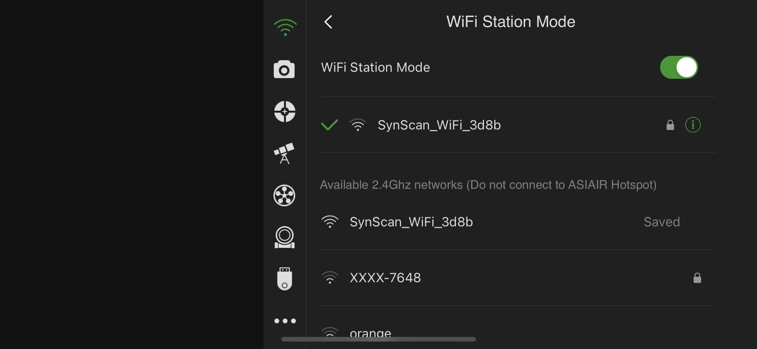 Dans ASIAIR (se connecter au réseau Wifi ASIAIR):