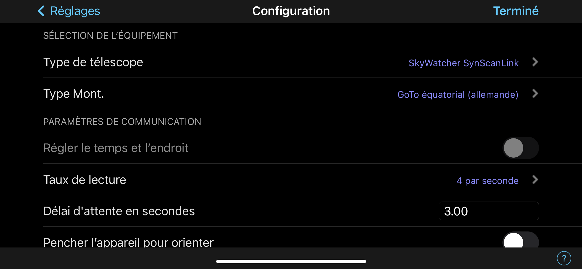 non philou dans Sky le seul paramètre qui fonctionne c'est: SkyWatcher SynscanLink
