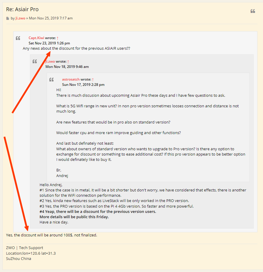 - "des nouvelles concernant une ristourne pour les utilisateurs d'ASiair classique ?"