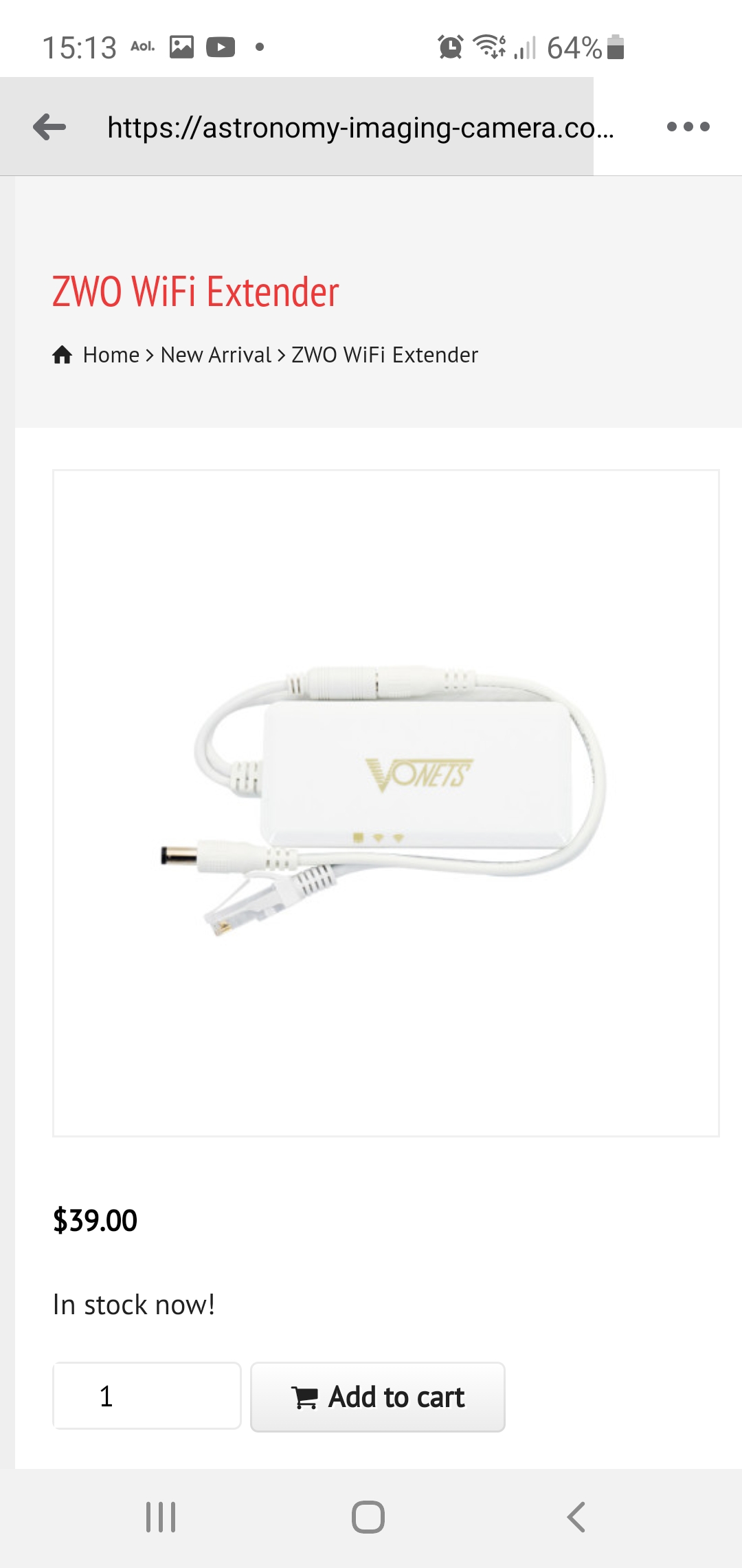 Apres le TPLink, ZWO a mis a jour le module extension WiFi et conseille le VONets...