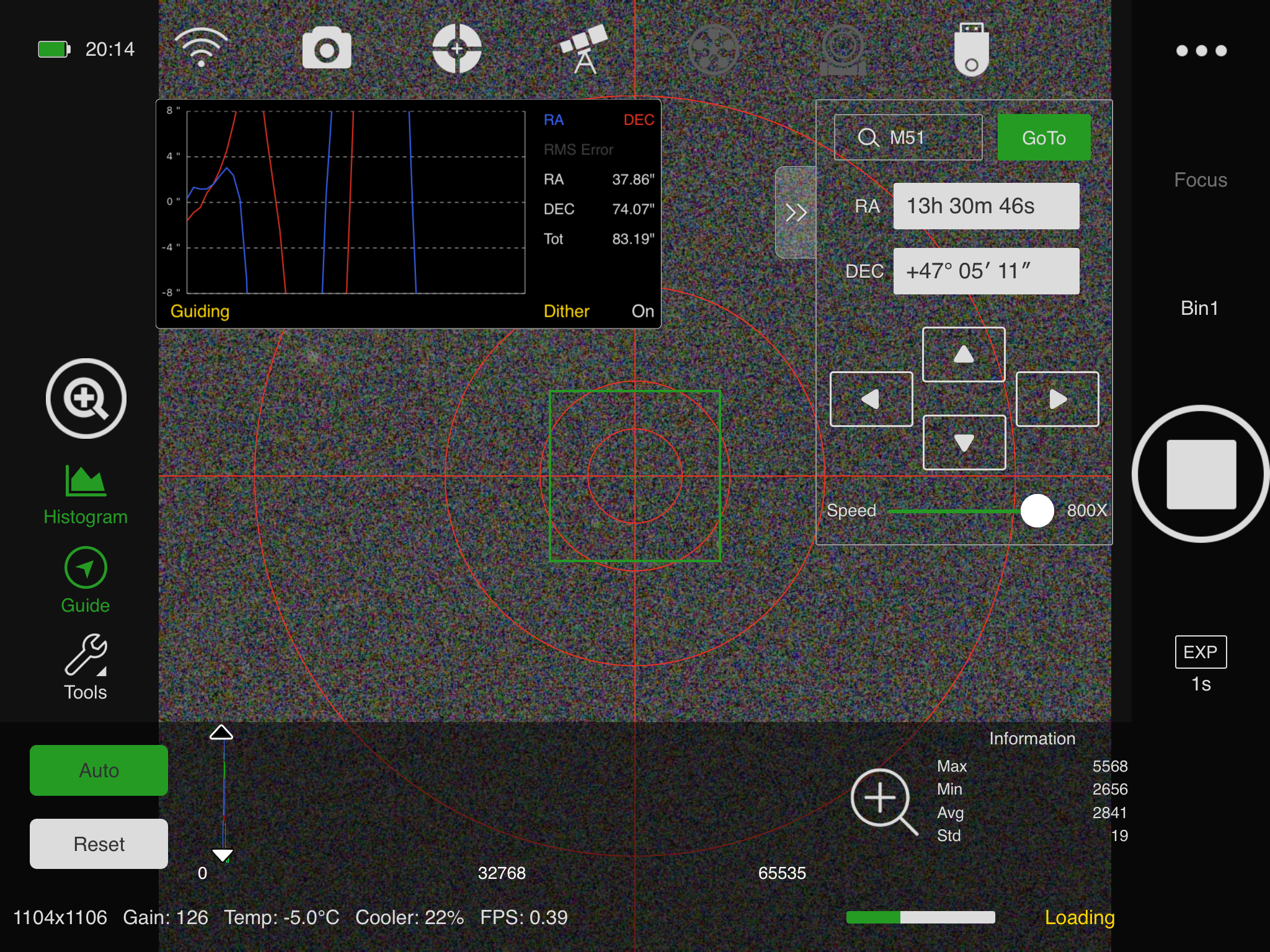 Je ne pense pas avoir de souci de guidage, mais j'essaierai ce soir sans brancher le port ST4, juste USB3 du coup. Ici le guidage ne fonctionne pas parce que je n'ai pas de suivi