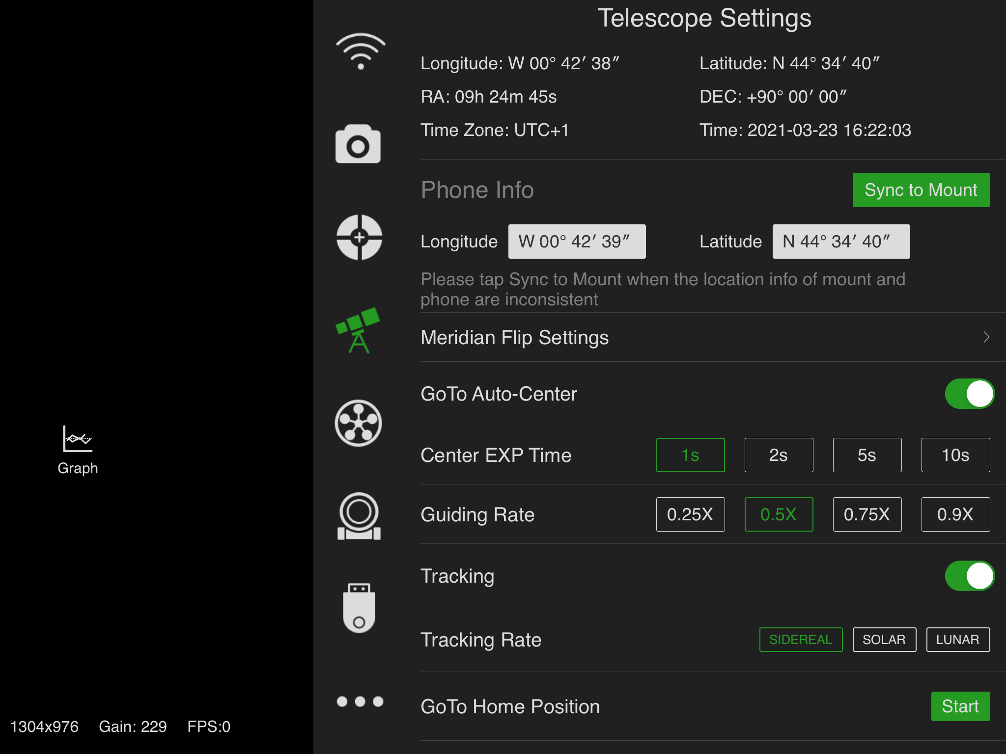 Vérifie aussi les options de suivi, là aussi tu as en fonction de la monture différentes options possibles comme le type de suivi (lunaire/solaire/stellaire/OFF).