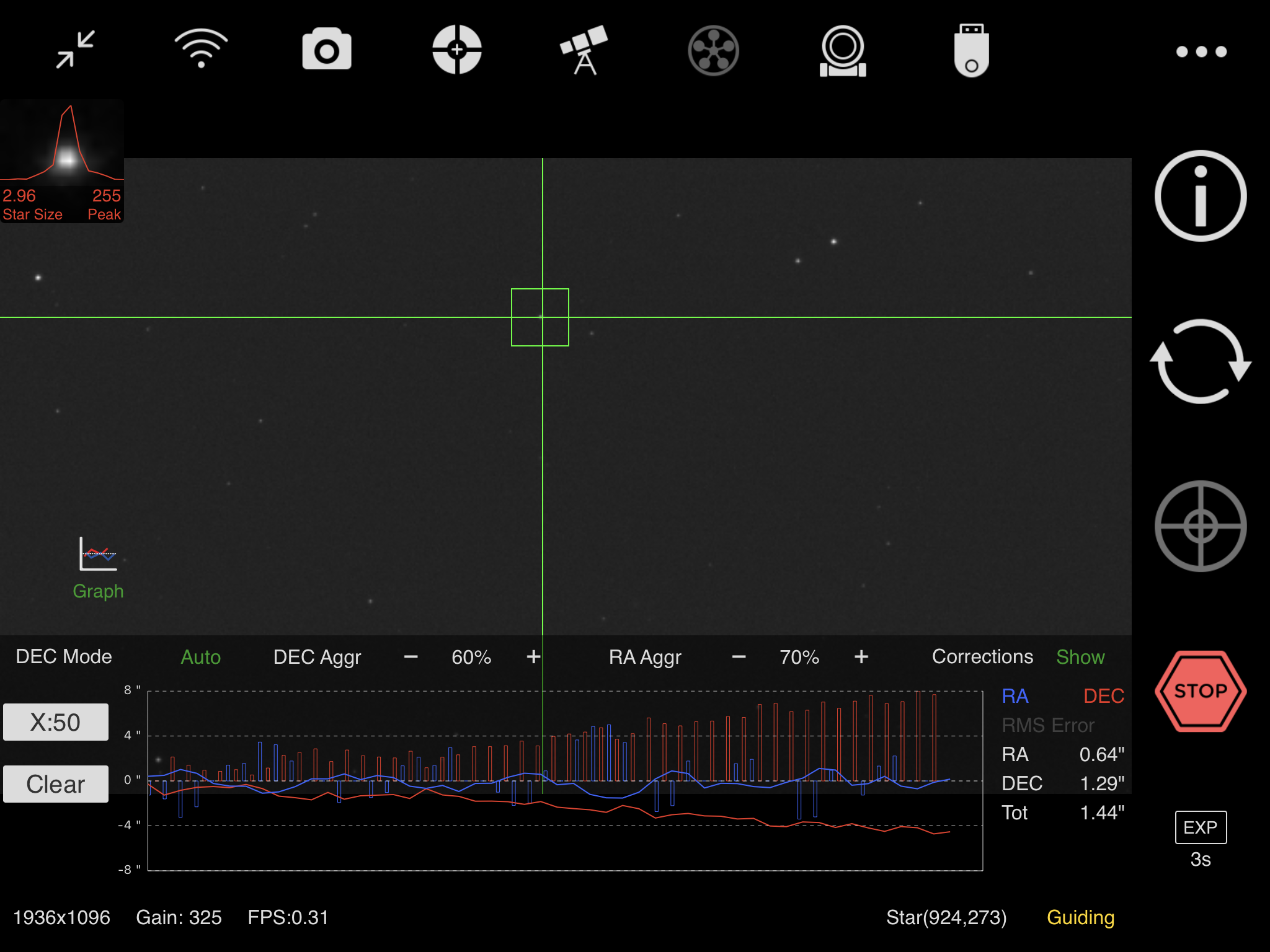 Hier soir j'ai ajouté une lunette guide Zwo 120mm de focale avec une Zwo asi 462MC pour autoguider et faire du dithering. J'arrive à pointer une étoile guide et à démarrer l'autoguidage, je reste sous les 1'' d'erreur périodique ce qui est top. Mais entre deux captures, le dithering opère (réglé à 3 pixels, 2'' de PE et 3 sec de stabilisation) et mon erreur périodique part en vrille, l'Asiair attend donc indéfiniment la stabilisation pour capturer... Quelqu'un comprend ce qui se passe ? C'est comme si l'autoguide perdait l'étoile guide lorsque le dithering opère et je ne sais pas comment régler ce problème à moins de repointer une étoile manuellement entre chaque pose.