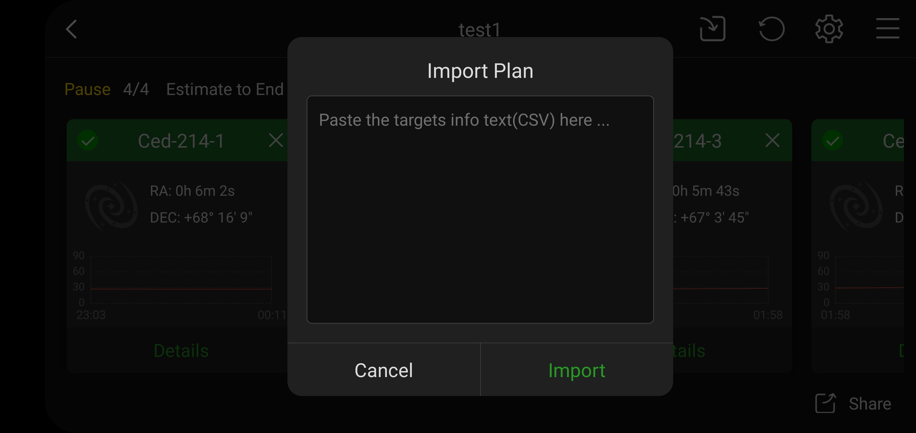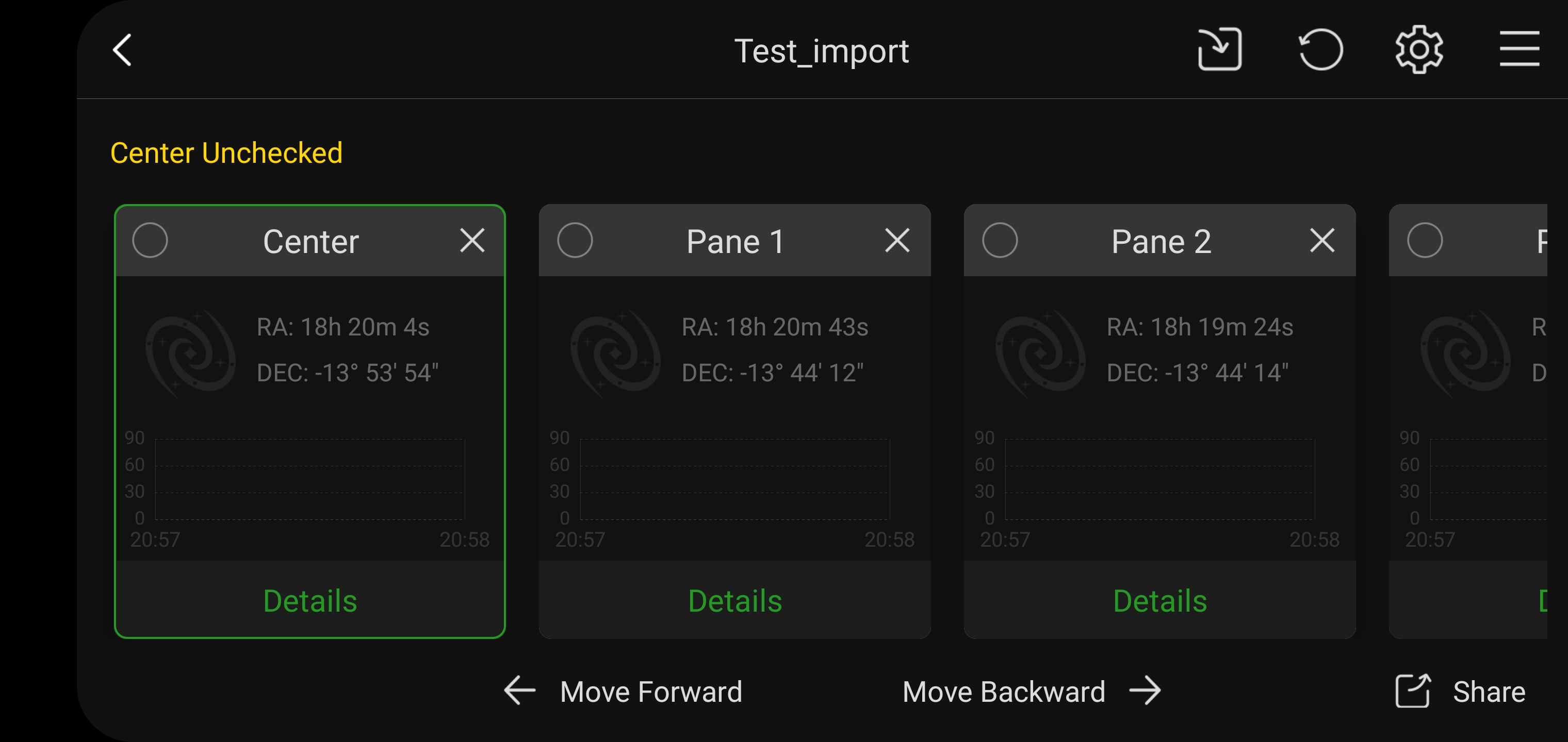Une fois coller le presse papier, le plan est créer par l'ASIAIR (le premier screenshot est un test sur M16, avec selectionné un panneau extra central)