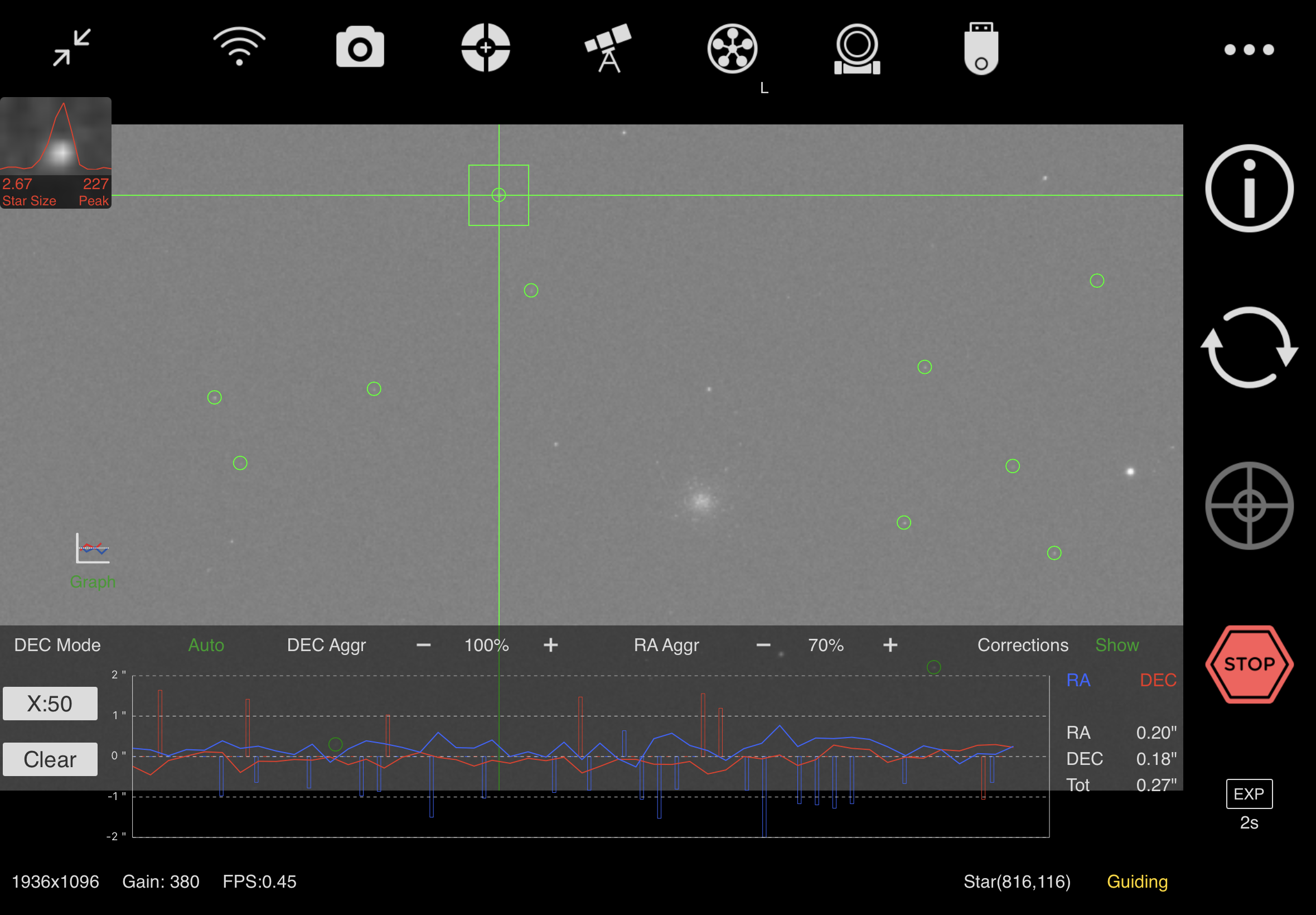 La 462MC est sensible... sur un guidescope, je prendrait note du couple Exp/Gain qui donne bonne image en Cam principale, et transférerai cela dans réglage guidage, comme point de départ.