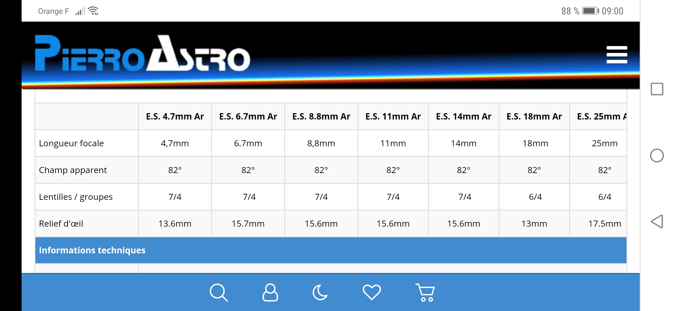 Et je découvre que certains oculaires sont particulièrement optimisés pour les porteurs de lunettes comme moi.