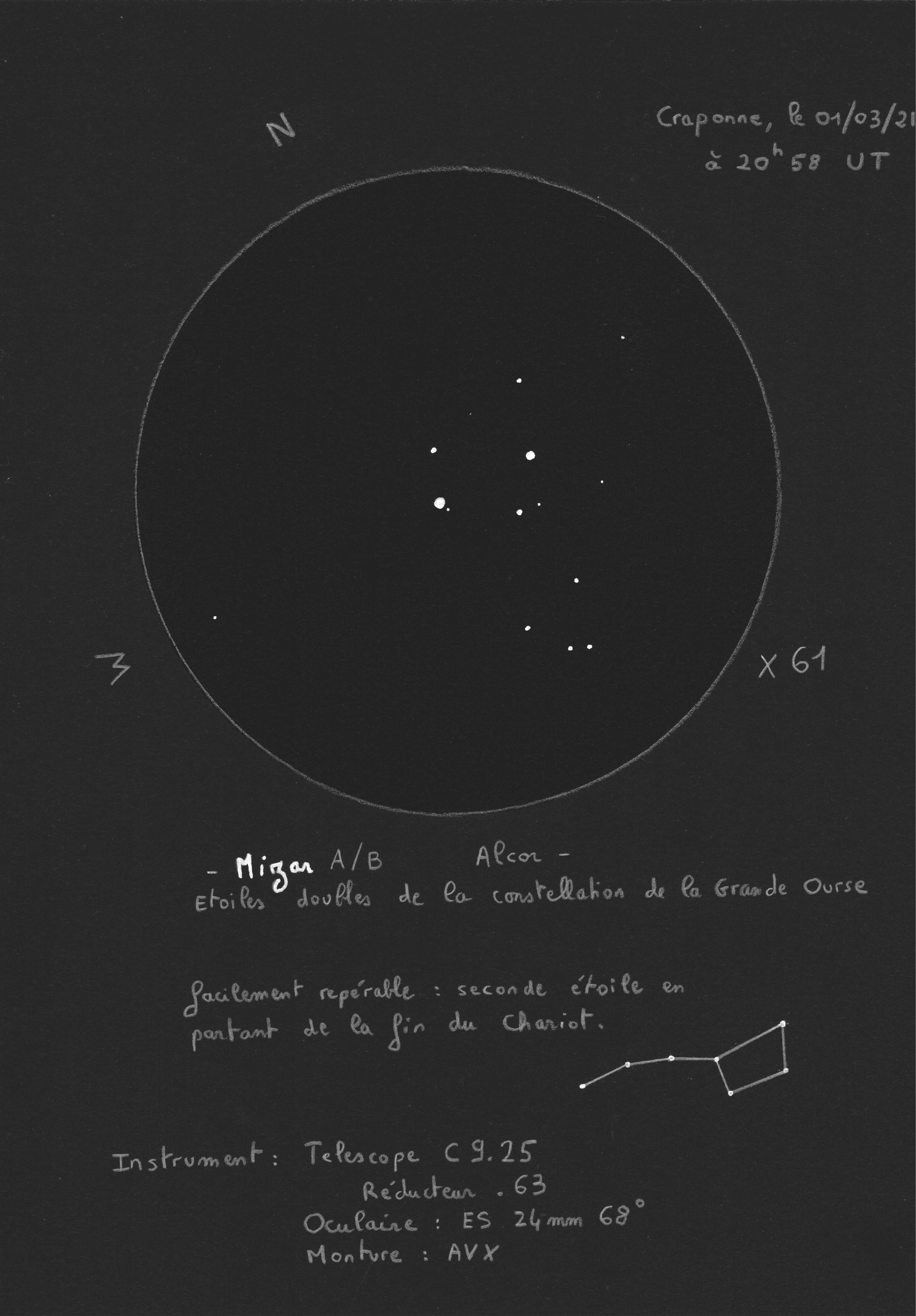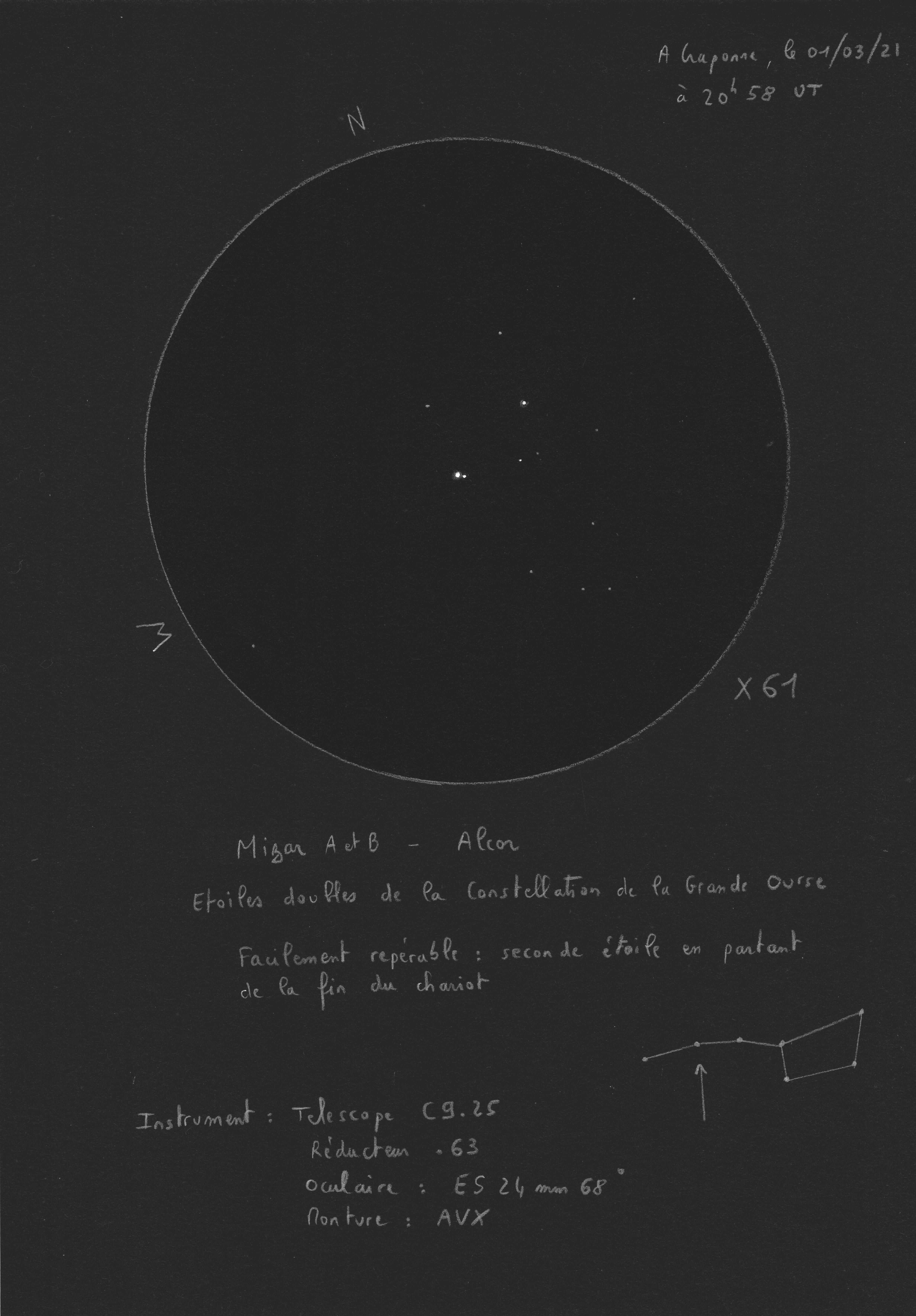 Mizar A/B et Alcor, 01-03-2021, premier dessin