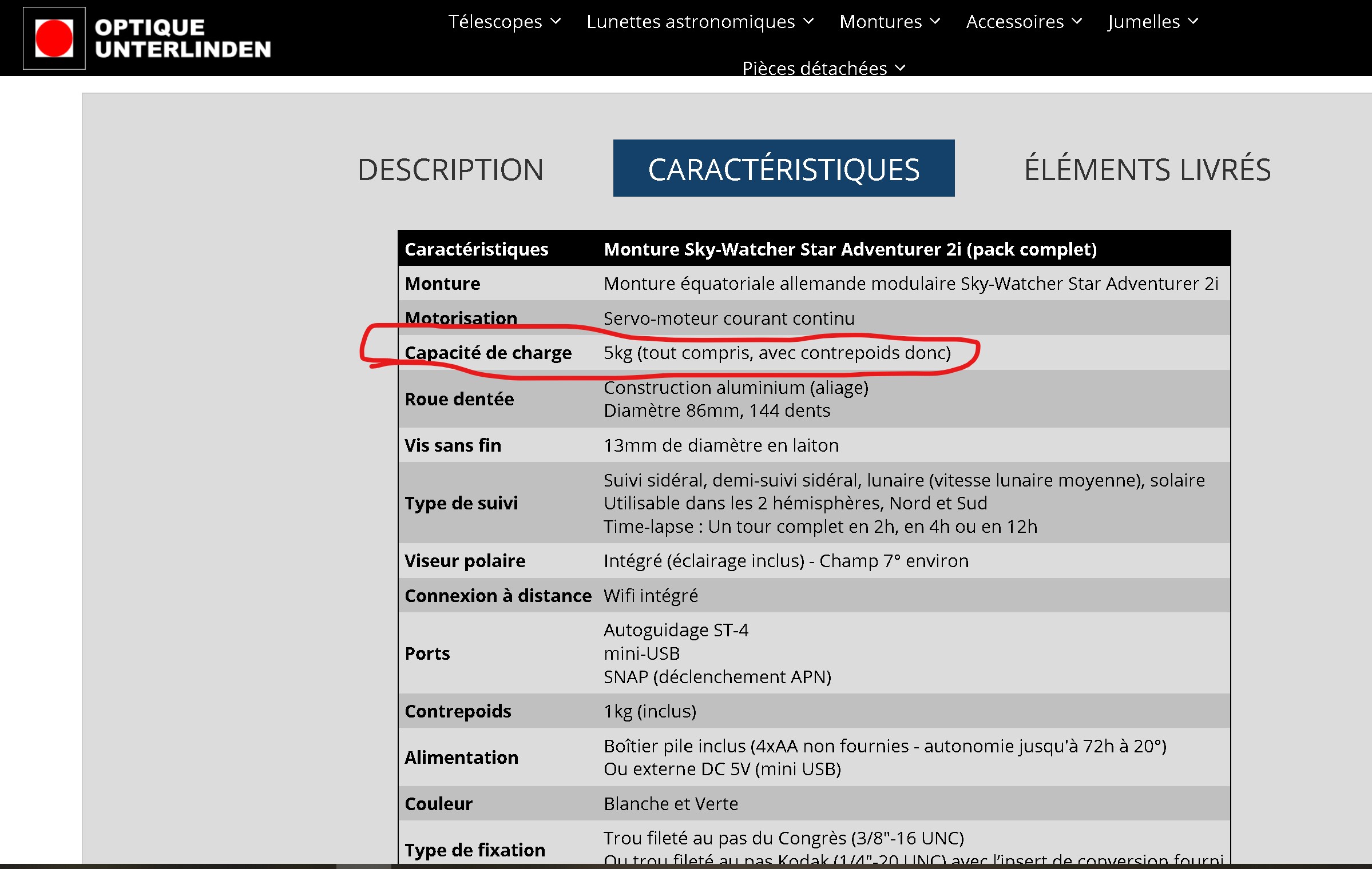charge de la star adventurer 2