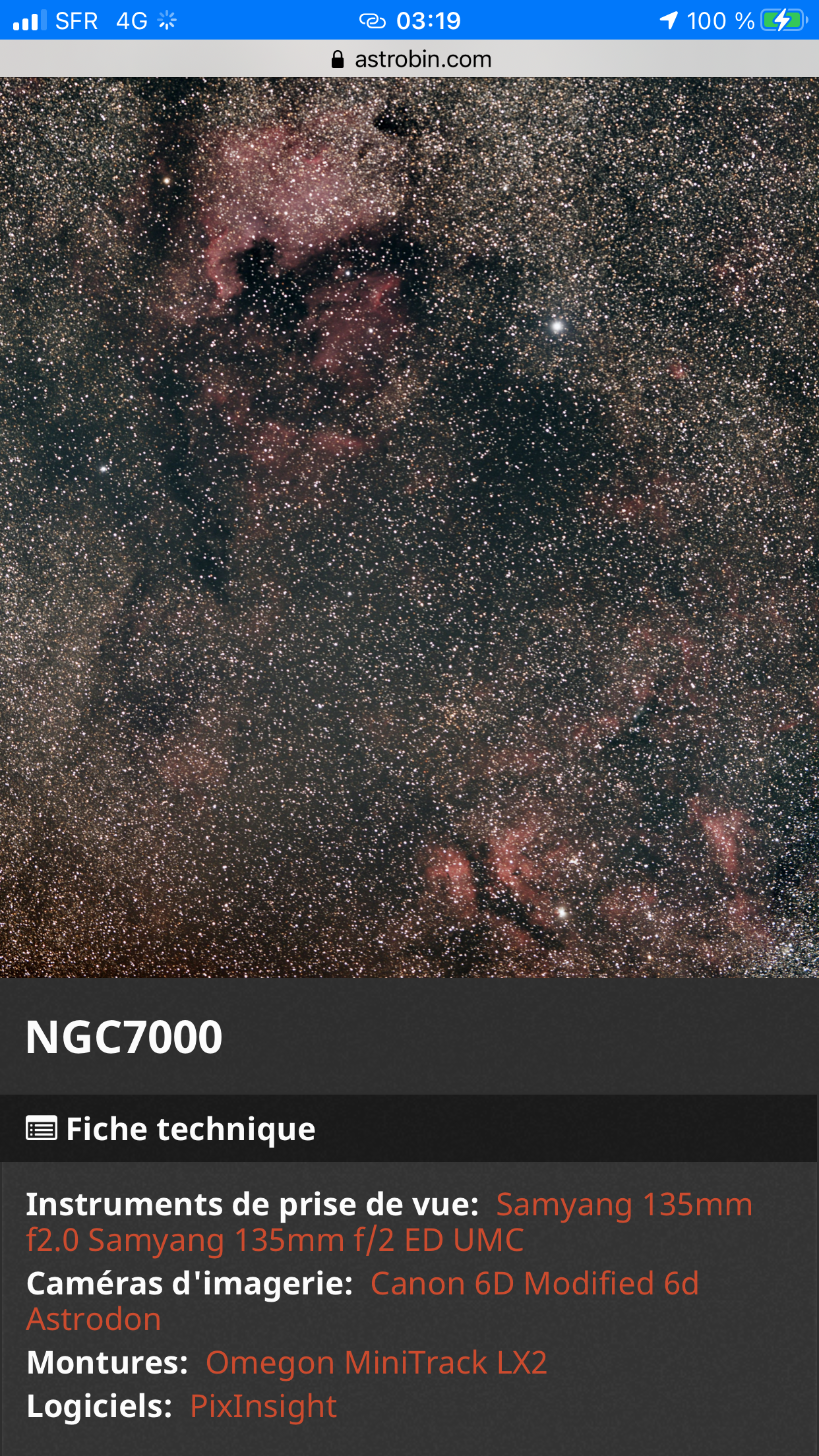 Mon conseil est de ne pas te lancer dans la discipline astrophoto car tu as tendance à multiplier les achats (en visuel) mais en astrophoto c'est encore pire ! À moins que tu es du temps et un budget astro énorme, tel que je commence à te connaître, tu vas commencer avec un apn défiltré à 150€ et 3 mois après, acheter une cam mono à 2000 € plus roue à filtre et filtres sho.😁