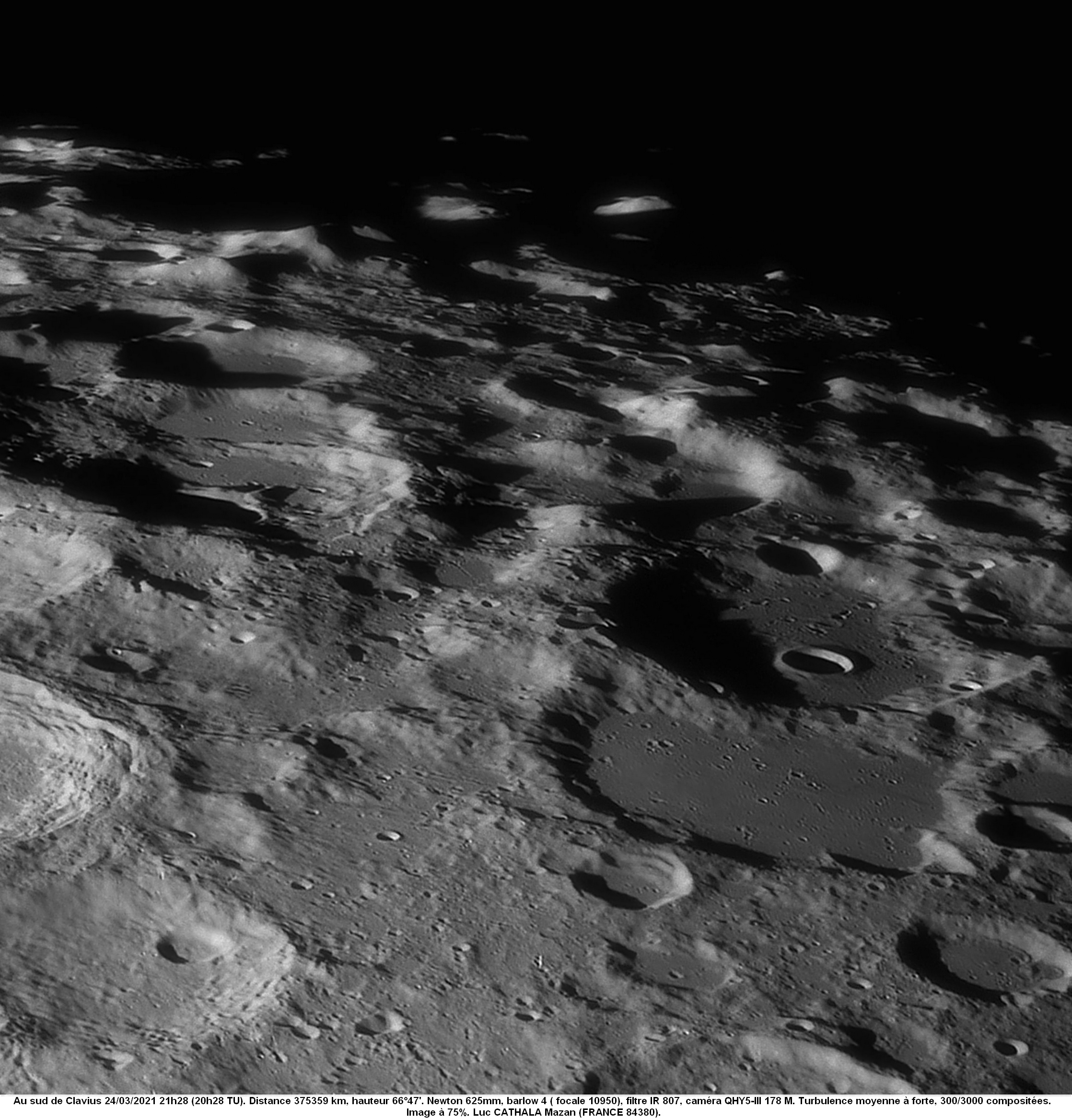 24/03/2021 Houston on est un peu bas sur le sud de Clavius au 625 mm