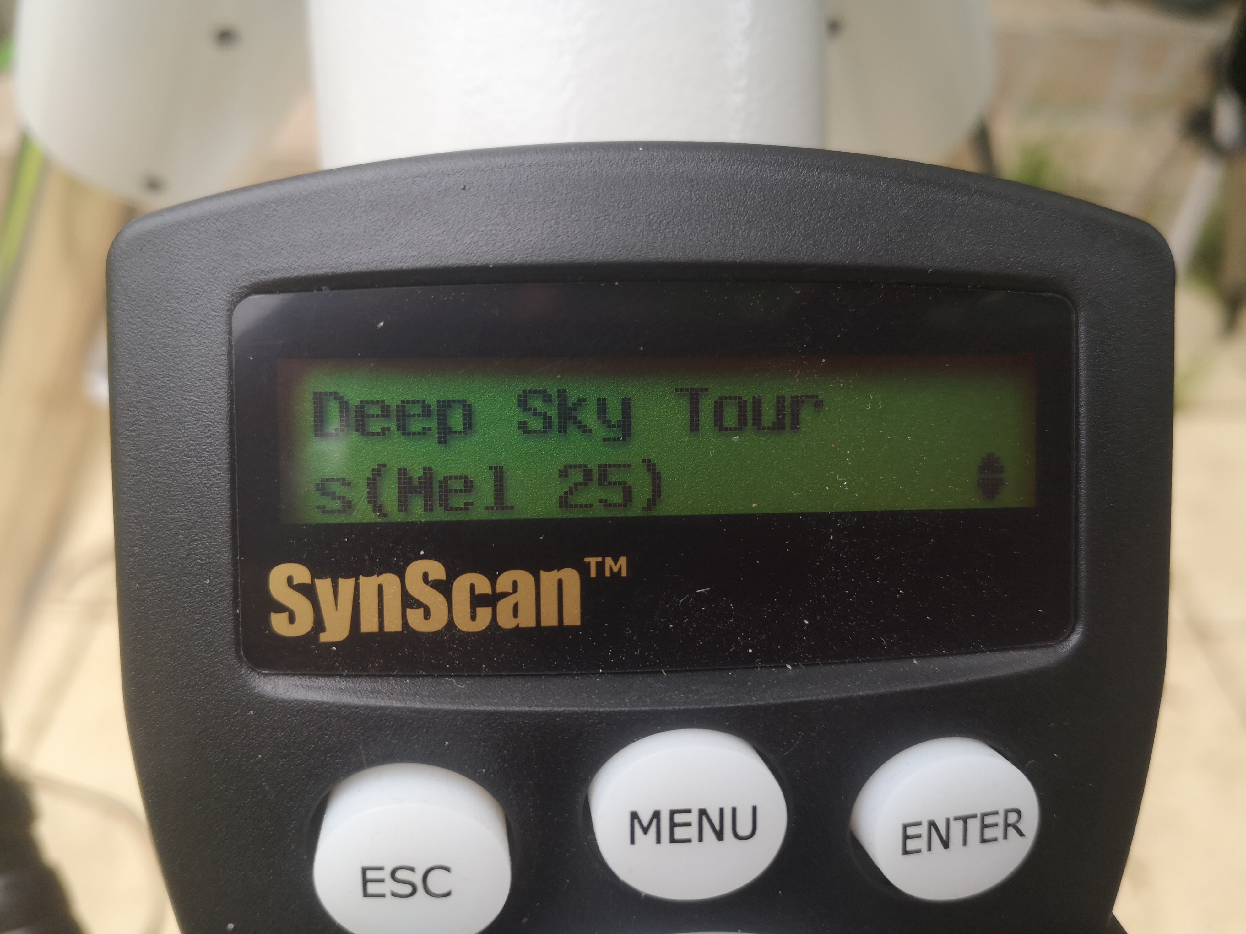Alors, voilà quelques photos et le problème vient juste après avoir confirmé avec le chiffre 1 quand il me demande si je veux faire l'étalonnage sur une étoile. Et je suis sur un nouveau menu "deep sky tour"