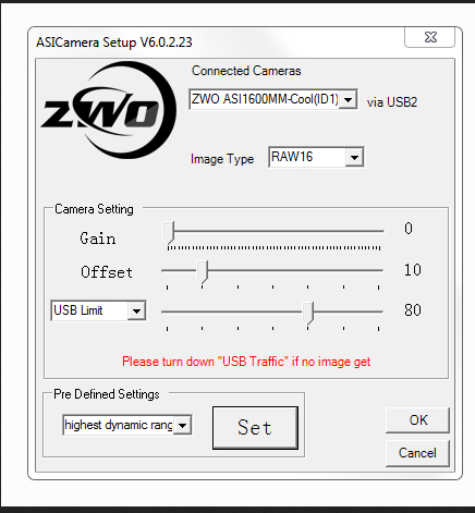 Quand je parle du gain , je veux indiquer le réglage ascom de la caméra