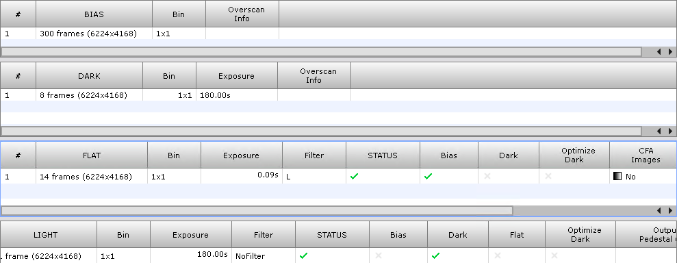 Habituellement j'image à 180 sec mais d'après les résultats j'en conclu qu'il faut monter le temps de pose à 240 sec ou 300 sec