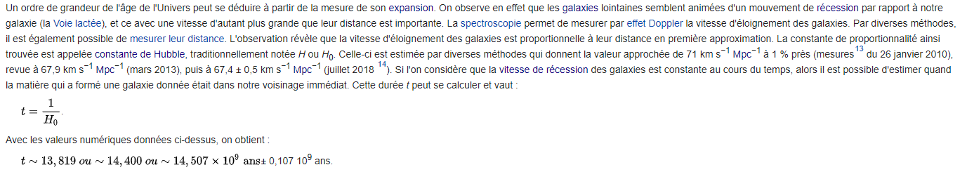 En fait les Scientifique déduisent l'âge de l'univers à partir de la constante H0