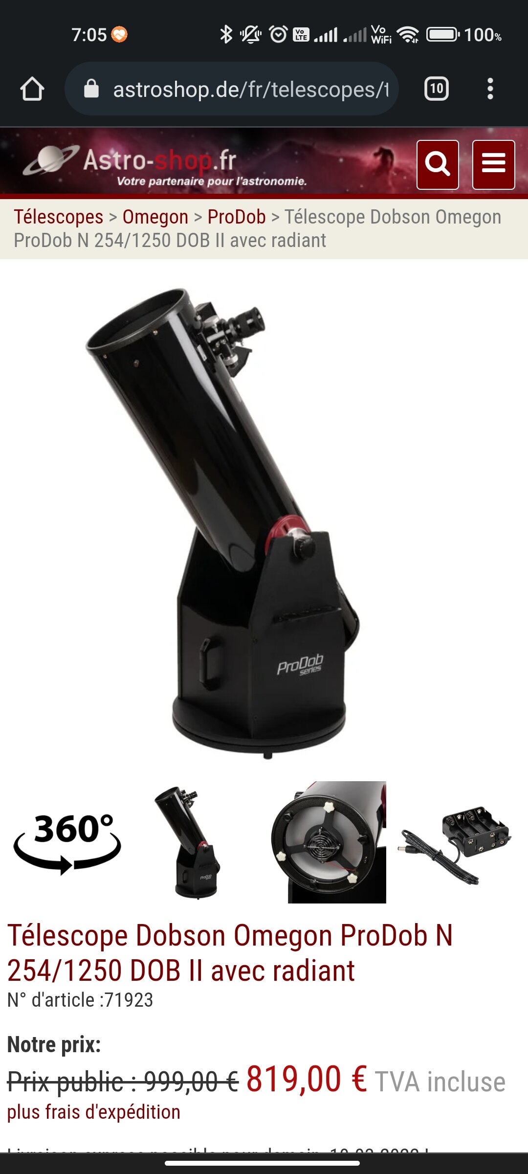 Achat Télescope Dobson Omegon ProDob N 254/1250, regret