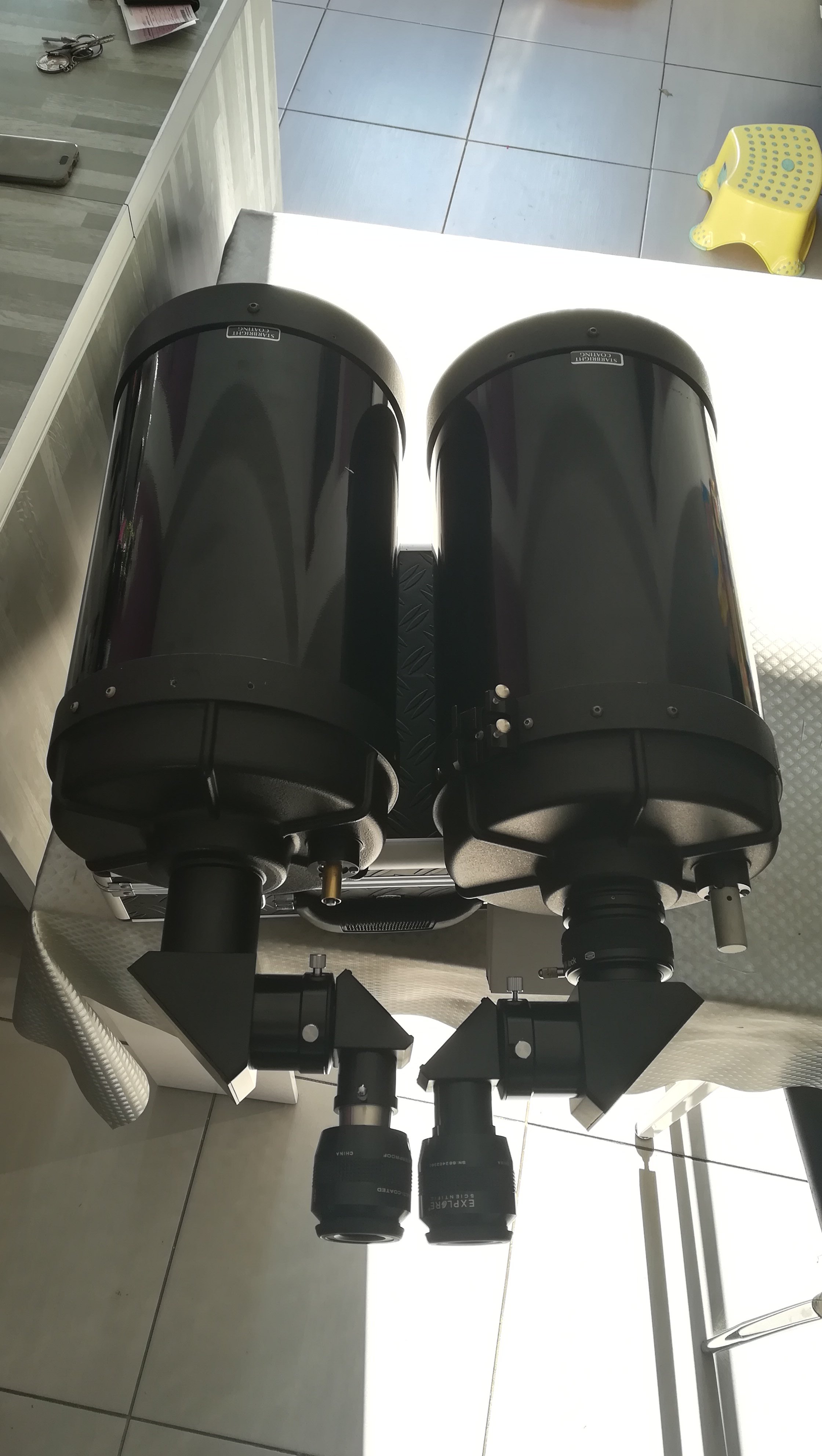 C'est possible oui, suivant l'inclinaison des deux renvois coudés on peut observer comme une paire de jumelles. Mais bon, absolument pas confortable dans ce cas de figure, et pire quand on s'approche du zénith.
