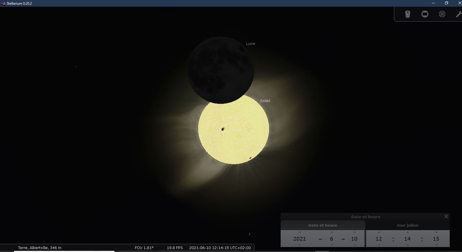 Et pour ceux qui habitent en France pas trop loin de la ligne Pontarlier/ Roanne/ et en étendant un peu cette ligne vers le sud Ouest, il y aura moyen d’agrémenter vos photos de l'évènement d'un passage de l'ISS entre 12h49 et 12h52 suivant votre localisation.