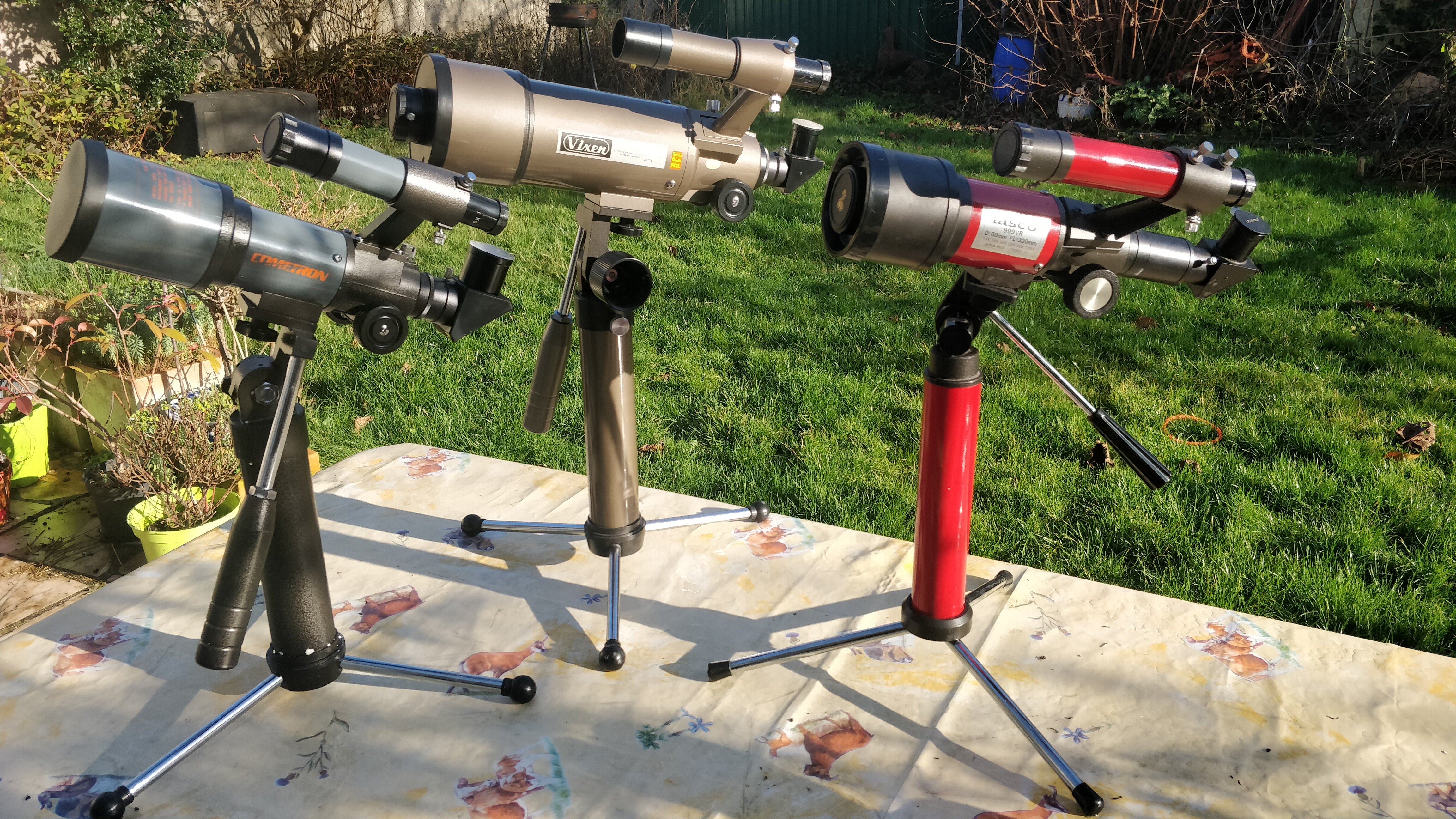 staffy Posté 4 janvier 2022 Posté 4 janvier 2022 Il y a 11 heures, Sagi75 a dit : Père Noël m'a bien gâté.... Ils ne sont pas tous Orange mais c'est dans la même veine Perl/ Vixen fabrications Japan. * Celestron Cometron Sky Watcher CO-62 62/300 circle (V) * Vixen 80 S 80/400 * Tasco #999VR 60/300 circle (Z) Quelques informations : - Tasco 9 VR 60/300 (fabrication Vixen) et les Tasco 99 VR et 999 VR : Les révolutions de la quête du petit télescope : mon Tasco/Vixen 9VR | Astronomie de 10 minutes (wordpress.com) et le Tasco 999 VR (avec un Edmund Scientific Voyager 6001 (63/504 de 1980) avec une petite surprise à 5' 55" - Vixen N P 80 S (80/400) : Premières impressions Vixen New Planet 80s - Les tests - Webastro - Celestron Cometron SkyWatcher CO 62 (62/300) : Cometron CO-62 avec trépied - Télescopes classiques - Nuits nuageuses (cloudynights.com)