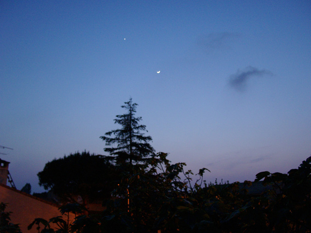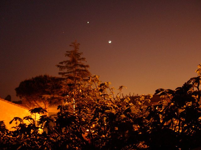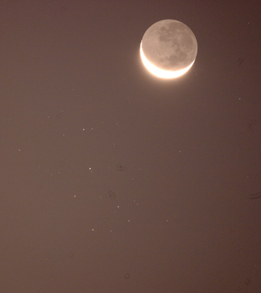 Lune et Pléiades, 300mm F4.5... et ciel orange