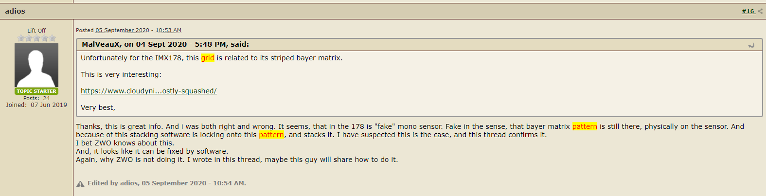 Ma première photo de la lune diurne avec une asi 178MM :) . . . mais avec une trame :( qui ressemble à une matrice de bayer