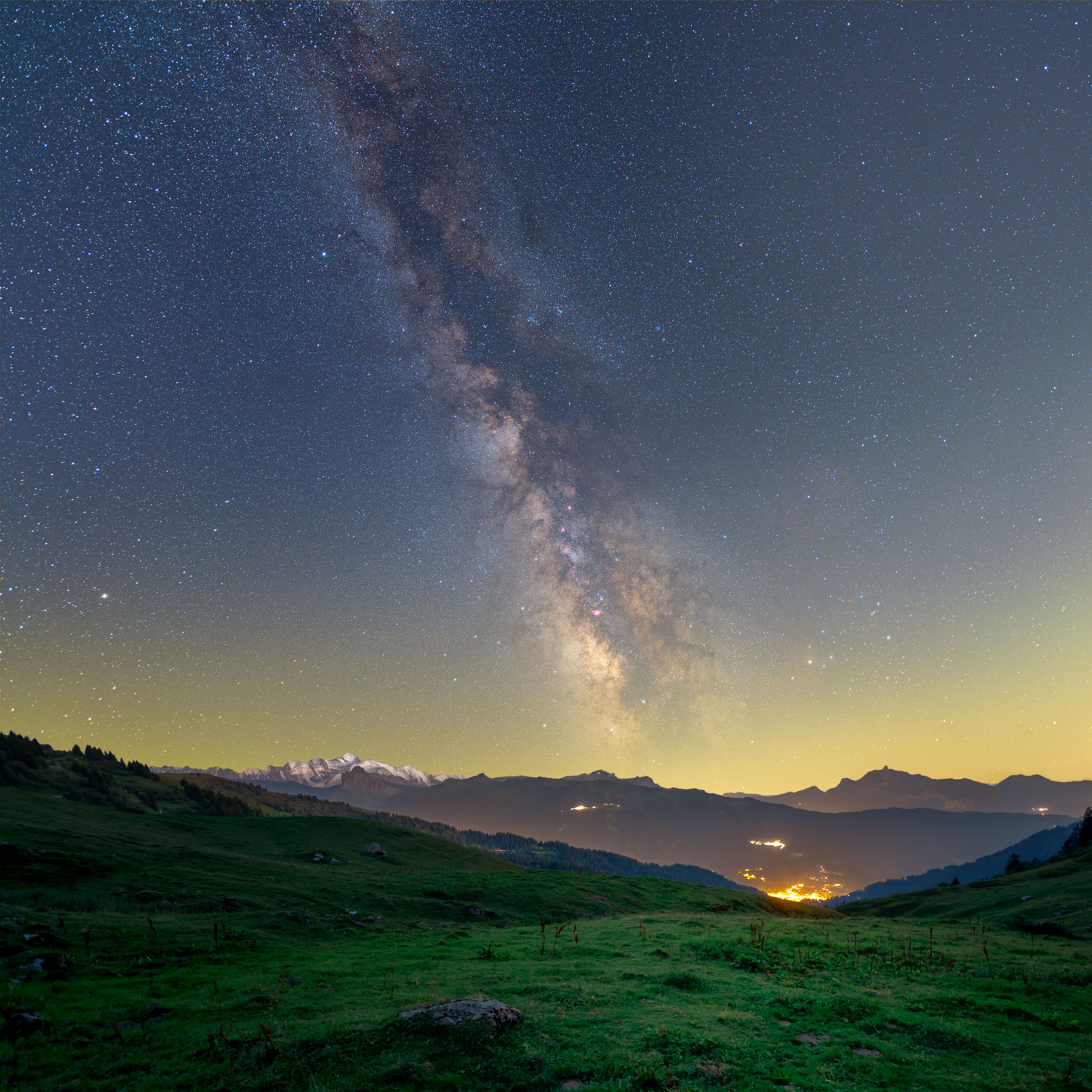 Fred_76 Posté 17 août 2021 Posté 17 août 2021 Bonjour, Voici le Mont Blanc (à gauche) vu depuis le Col de Joux-Plane (Haute Savoie). La ville éclairée est Morillon. La structure éclairée seule sur la gauche est ce p@@@ain de Club Med qui reste éclairé toute la nuit (alors que Morillon coupe une partie de son éclairage vers minuit). Canon 6Da + Sigma Art 14/1.8 + Astrotrac Sol : 6 poses de 30 s, 100 ISO, f/3.2, pendant le crépuscule nautique Ciel : 5 poses de 180 s, 1600 ISO, f/2.2, pendant le crépuscule astronomique A+ Fred 8