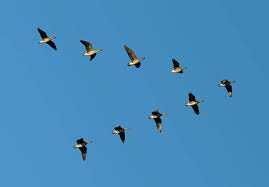 3. - Les oiseaux, surtout les migrateurs, volent instinctivement en V quand ils volent en groupe, et se déplacent surtout de nuit