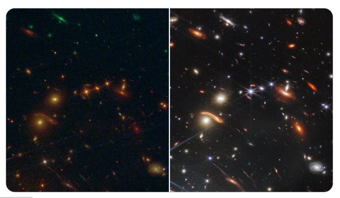 Je n'ai pas trouvé pour l'instant l'image faite par Hubble, côte à côte avec l'image optimisée du James Webb. Quelqu'un l'a ?