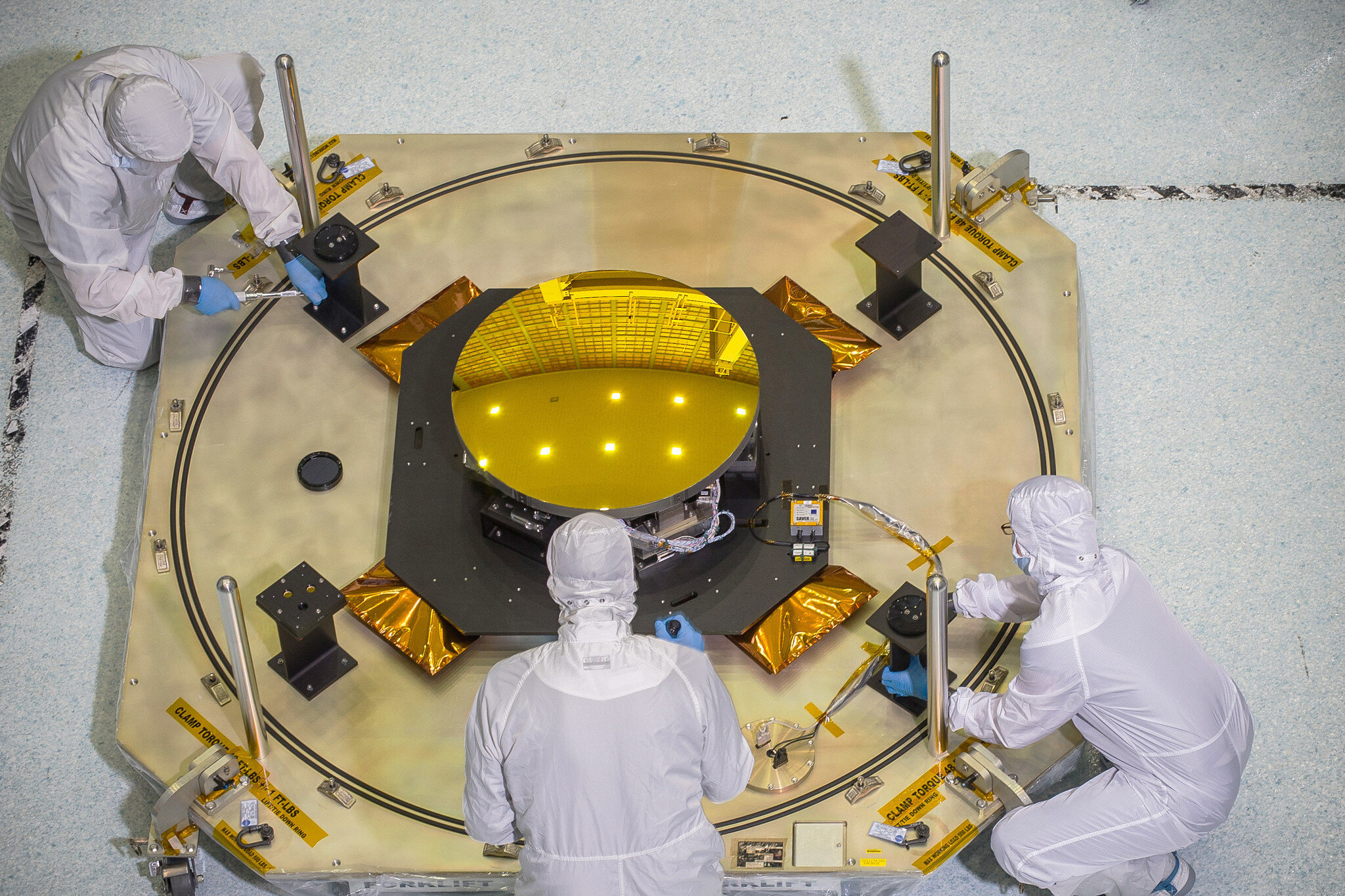 Reste plus qu'à déplier le miroir secondaire. Si cette étape se passe bien, on aura un télescope fonctionnel, même si un des miroirs primaires ne se déplie pas bien par la suite.
