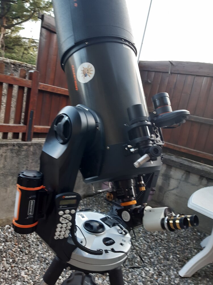 Troisième C11 depuis 1986,tous à fourches,le dernier étant le CPC.Depuis longtemps je privilégie  le RC vissant SCT (William Optics ),crayford motorisé JMI EV,bino Denkmeier,caméra d'alignement Starsense,batterie lithium pro  Celestron,contrepoids Geoptik,etc...