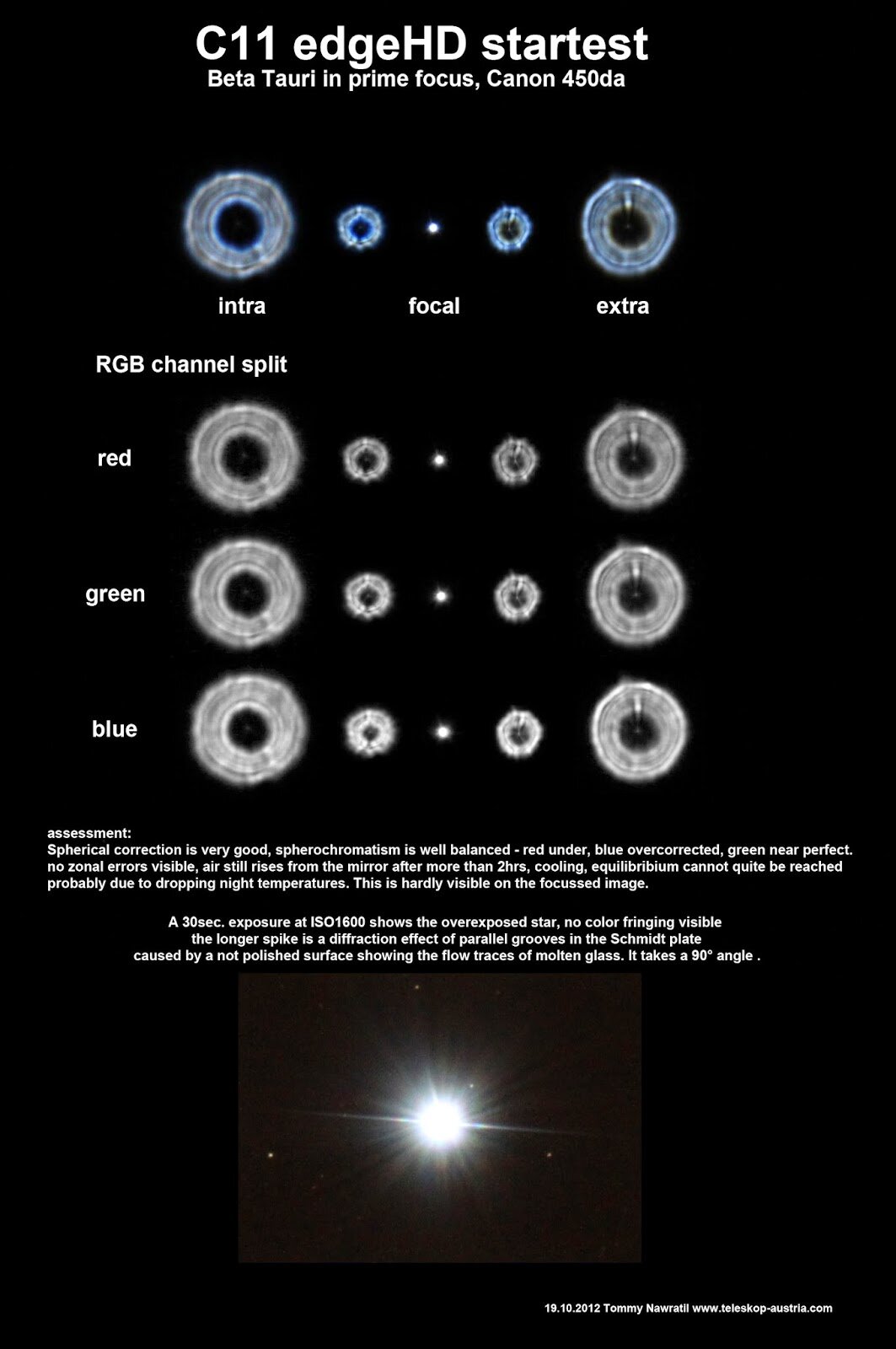 Pour un schmidt cassegrain comme pour une autre optique, le disque de diffraction (figure d’airy) ne sera visible qu’avec une bonne mise au point :)