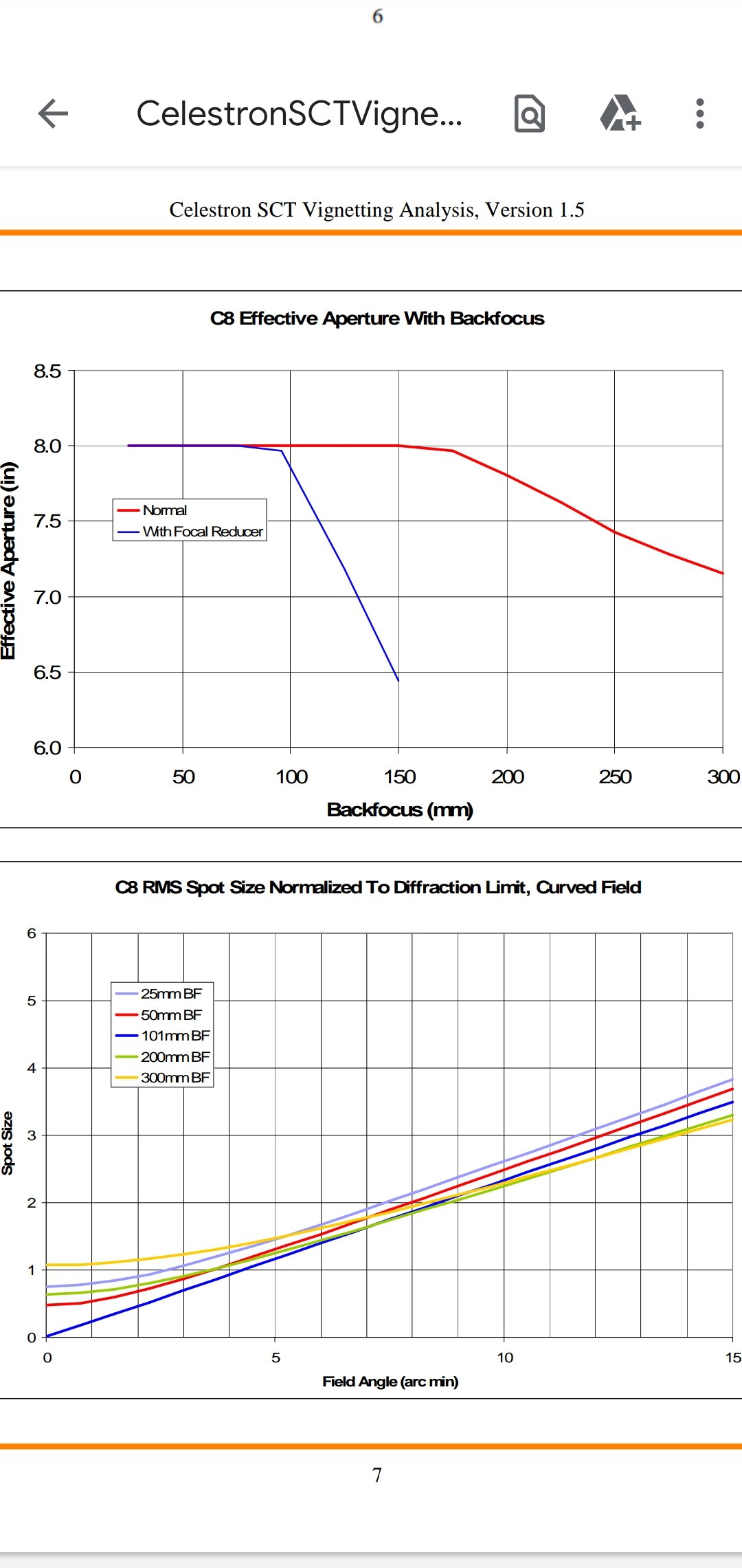 Et un test de terrain sur c8 de edZ sur cn avec un RC astrotech, je cite : "With a 0.63x reducer in place and my Astro Tech 2" SCT diagonal, aperture thru the reducer measured 190mm. So, a 2" diagonal attached to the 0.63x reducer on the C8 reduces aperture, but only by 13mm.