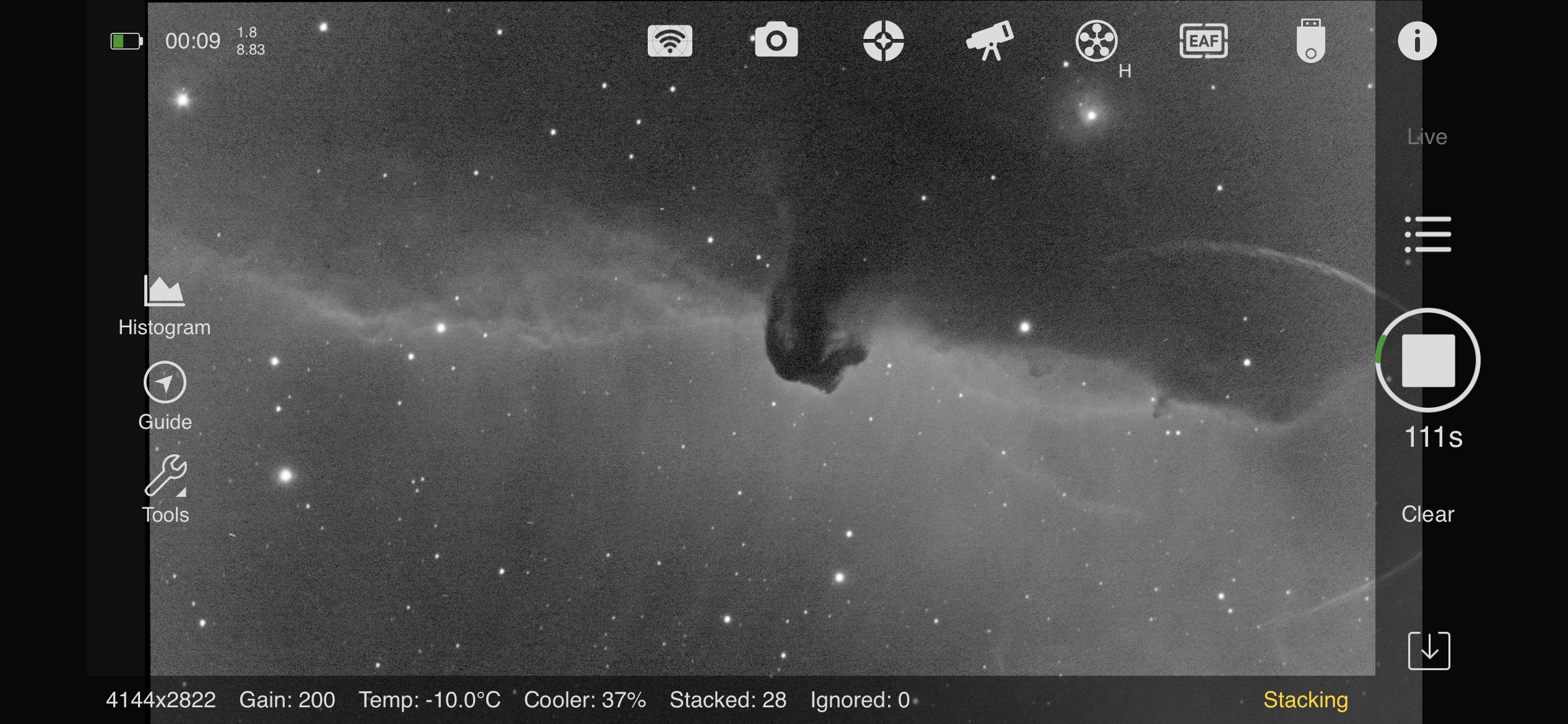 Au fait j'ai un peu de va bon avec la lune présente pour faire un essai M42 et m1 😋
