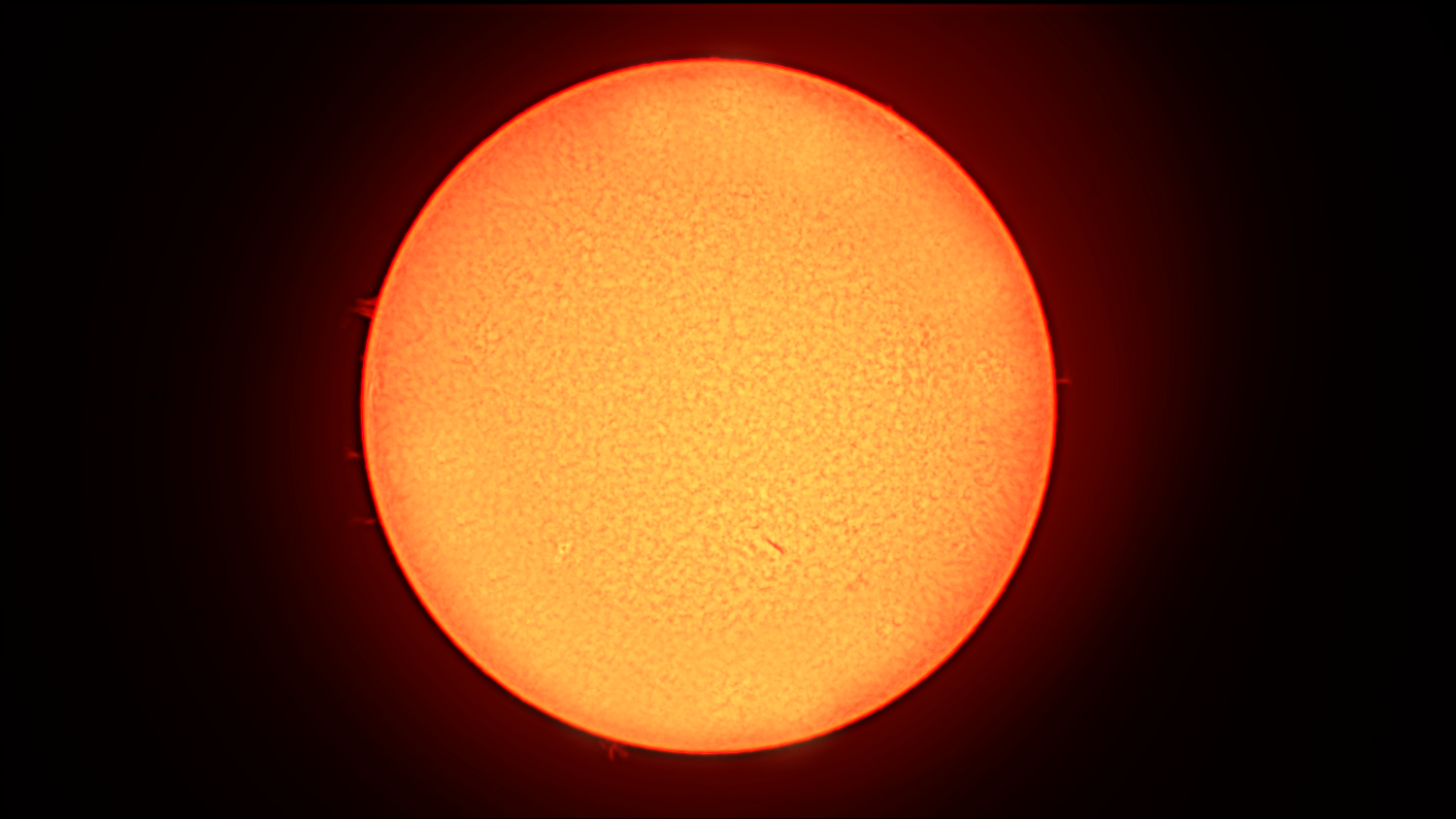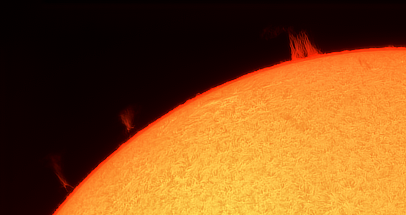 Soleil Disque solaire et protubérances 18 octobre , lunette 80 mm Halpha