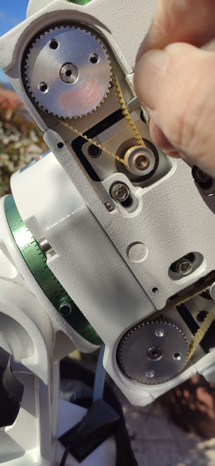 Mon AZEQ6 a deux ans et je l'ai achetée chez PA, donc avec "l'optimisation" du réglage des jeux et de la tension des courroies. La courroie AD a tenu 2 ans et quand je l'ai changée, j'ai remarqué que la courroie de DEC était tendue disons énergiquement.