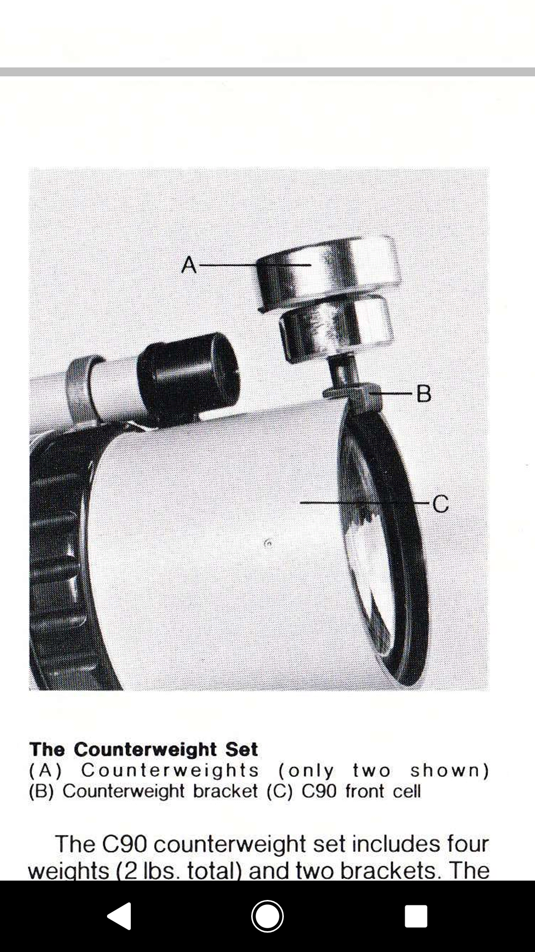 Skywatcher707 Posté 3 novembre 2021 Posté 3 novembre 2021 (modifié) Salut, Il existait donc 2 types de CP pour le C90. Celui qui se fixait dessus côté ménisque (quand même un peu risqué...) et celui qui se vissait directement sur le côté (2e photo). Je n'ai déjà vu "en vrai" que le montage latéral sur des C90. Les CP ne semblent pas identiques. J'ai ce dernier système sur la fourche du C14 orange (pour contrebalancer le côté opposé au chercheur 10x40) en plus des autres gros CP qui servaient pour l'équilibrage du tube et qui sont fixés sous celui-ci. Voir photo dessous et flèche rouge. Veux-tu que je donne les dimension et masse d'un des cylindres ? J'aurais pas forcément le temps avant semaine prochaine... Modifié 3 novembre 2021 par Skywatcher707