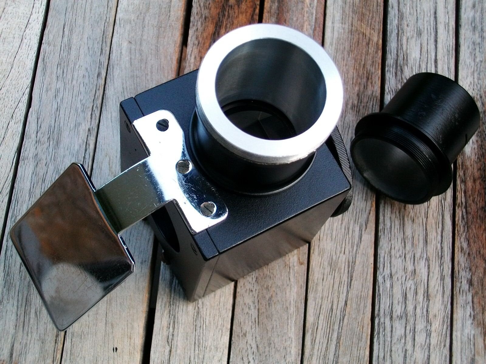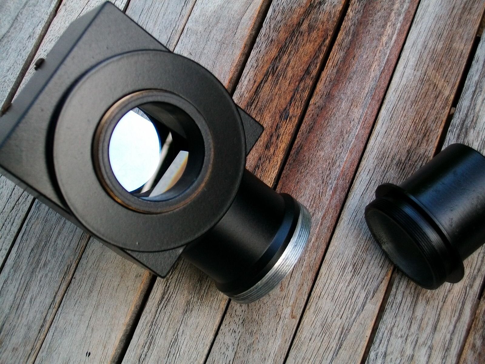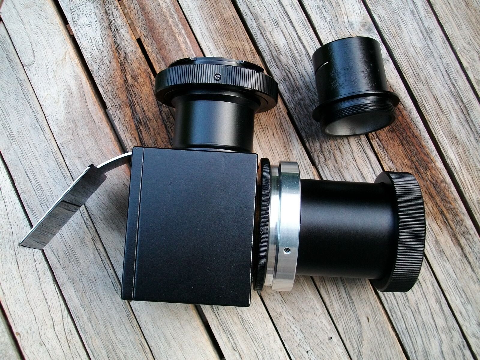 Vador59 Posté 14 avril 2024 Auteur Posté 14 avril 2024 Petit déterrage de topic, pour dire que j'ai réussi à dégotter une autre petite rareté qui ira bien avec mon AK70 : un prisme de Herschel made in Hasselt. Le propriétaire actuel observait avec depuis l'Autriche avec un Celestron d'où l'utilisation de raccord de type T2. Mais il avait conservé les bagues au standard belge de 31 (que je possédais déjà mais abus de bien ne nuit pas). En images : 2