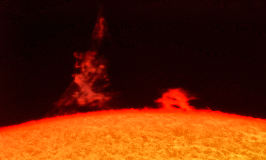 Soleil Belle protuberance et taches actives 8 janvier 2022 lunette 150 mm halpha