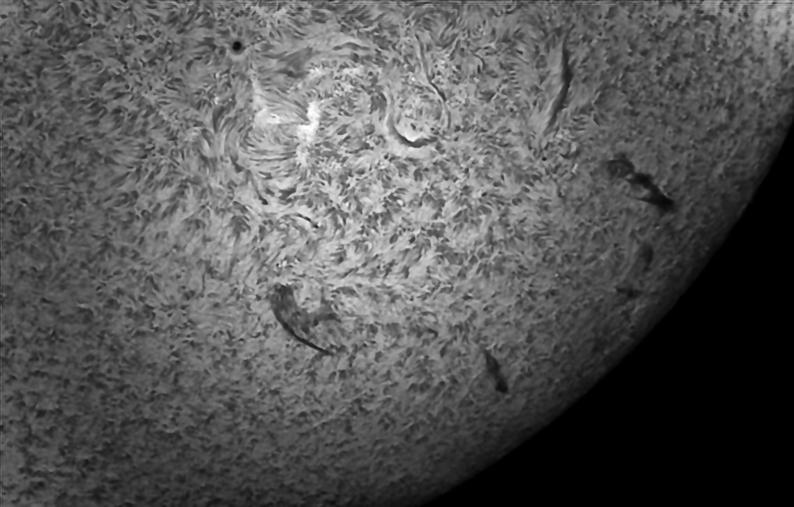 Soleil jet de plasma, filaments et taches solaire 13 janvier 2022 Lunette 150 mm halpha