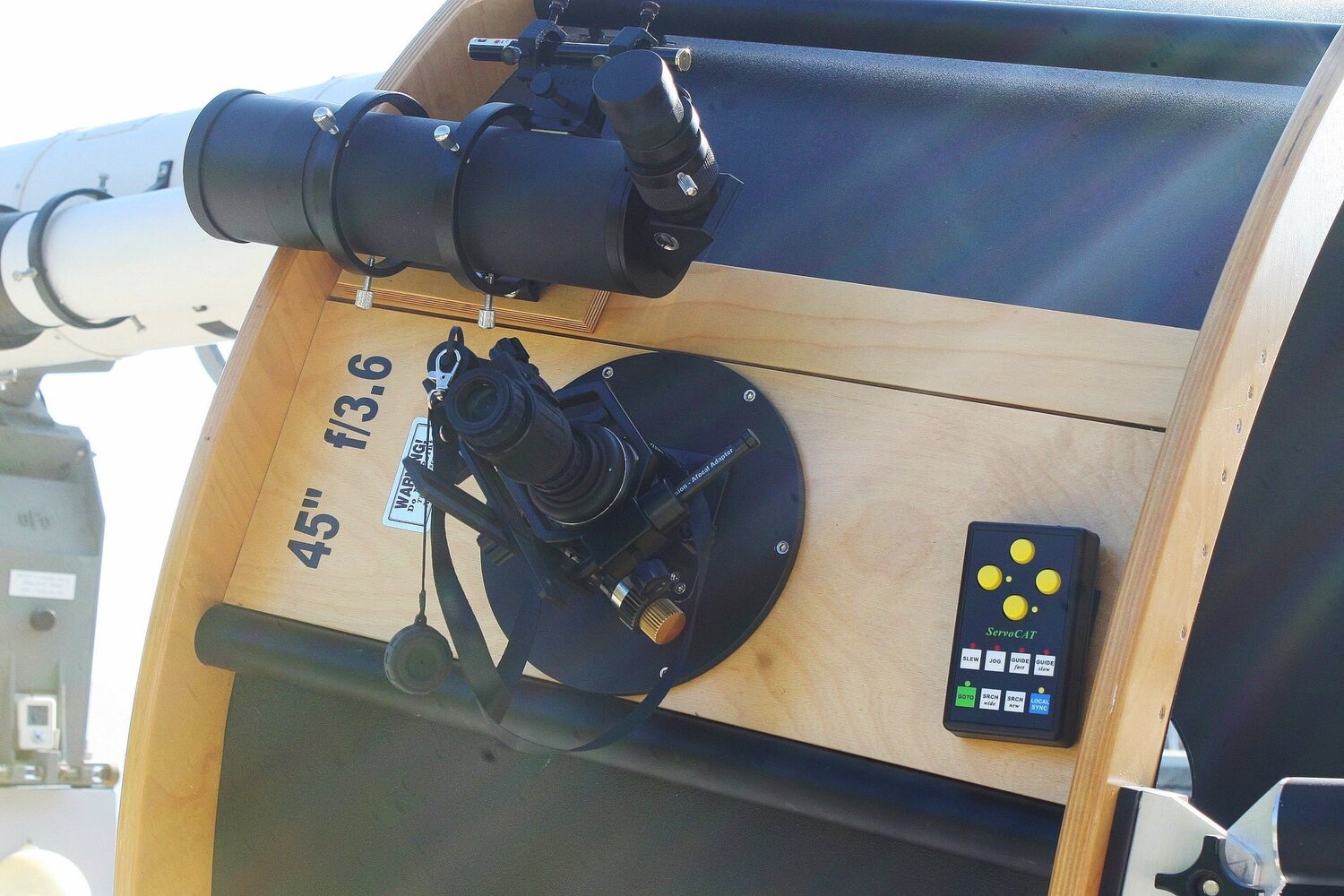 Aussi un inconvénient trop vite oublié et ce quelque soit le formule optique dès qu'on va sur 1 mètre et plus (1.2m sur la photo) ... bon ça fait travailler les mollets (n'est ce pas Alvin ?), c'est sûr qu'on est loin de la soirée lounge tranquille entre amis, ou bien alors diffuser sur un écran cinéma les images capturées en temps réel par l'instrument alors là oui :)